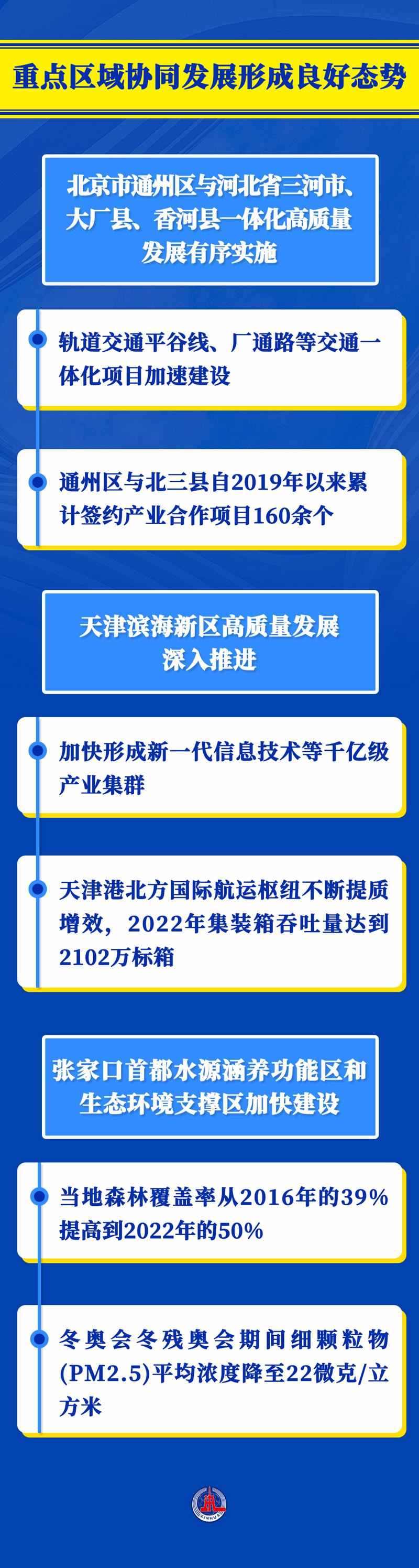 京津冀協(xié)同發(fā)展是一個(gè)系統(tǒng)工程。9年多來(lái),三地?cái)y手發(fā)力,重點(diǎn)區(qū)域協(xié)同發(fā)展步穩(wěn)蹄疾,交通、環(huán)境、產(chǎn)業(yè)、公共服務(wù)等重點(diǎn)領(lǐng)域建設(shè)不斷取得新突破。