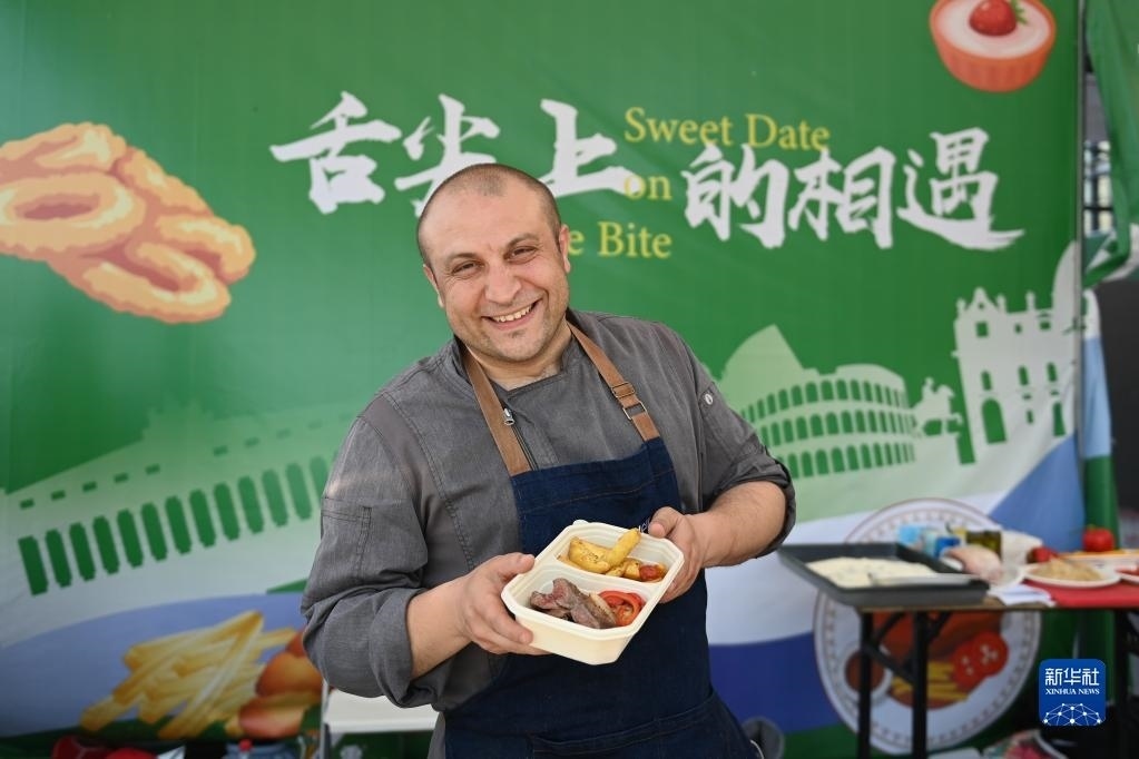5月15日,廚師在現(xiàn)場為游客制作羅馬尼亞美食。   新華社記者 黃宗治 攝