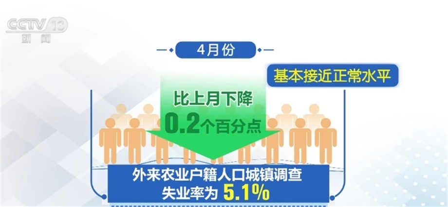 全國城鎮(zhèn)調(diào)查失業(yè)率連續(xù)兩個月下降。4月份,全國城鎮(zhèn)調(diào)查失業(yè)率為5.2%,比上月下降0.1個百分點,接近2019年疫情前的統(tǒng)計水平。