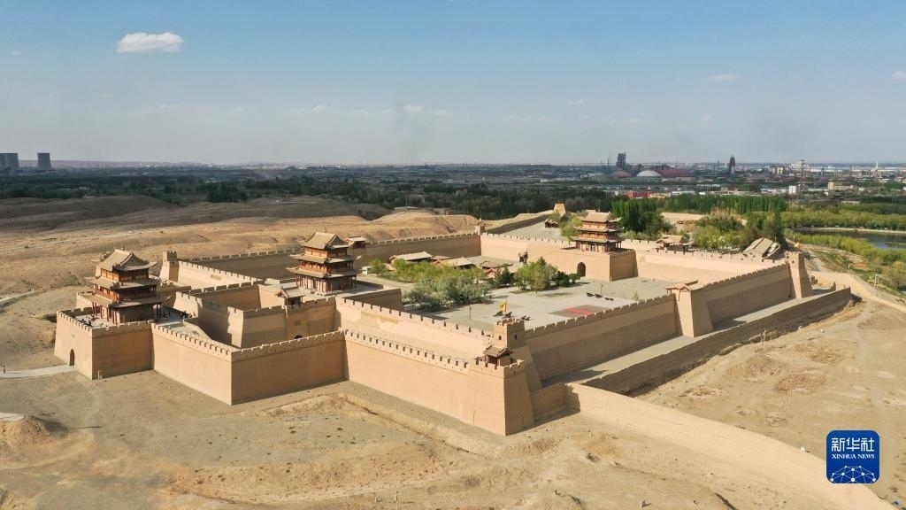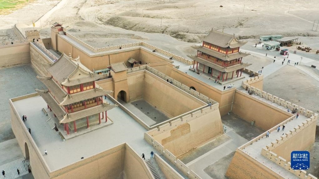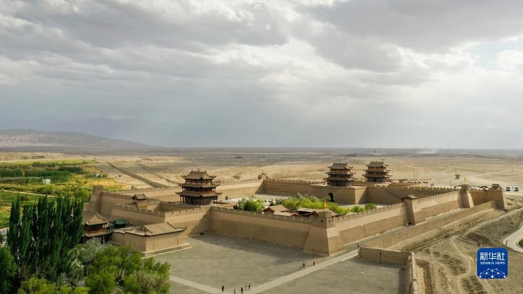 這是5月17日在甘肅省嘉峪關(guān)市拍攝的關(guān)城景區(qū)(無人機照片)。
