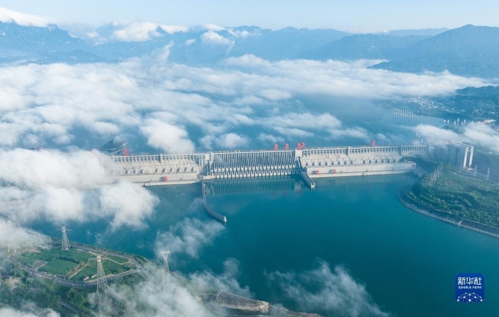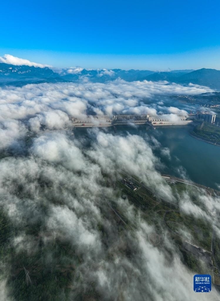 當日,湖北宜昌雨過天晴,三峽上空云霧繚繞,美景如畫。   新華社發(fā)(鄭家裕攝)