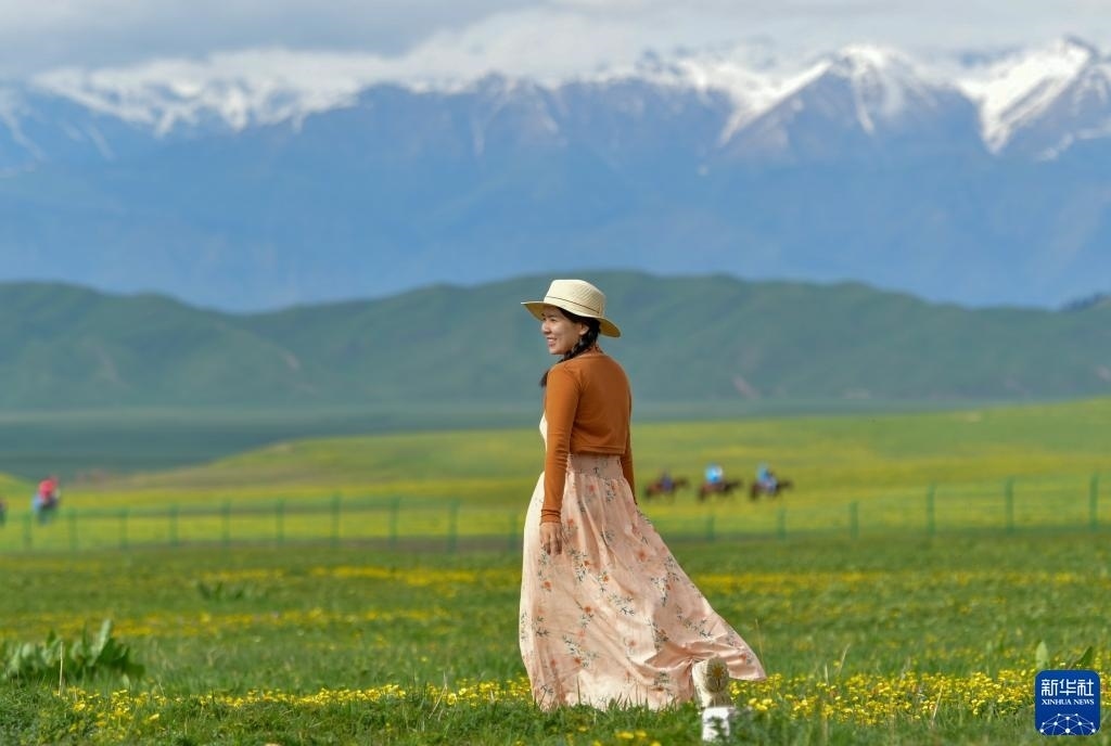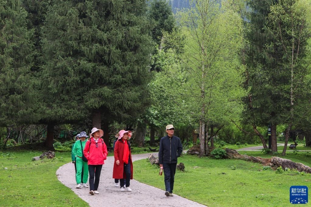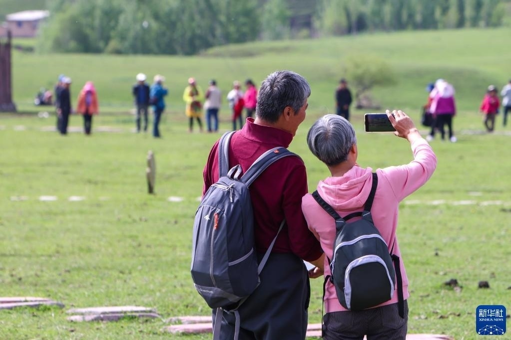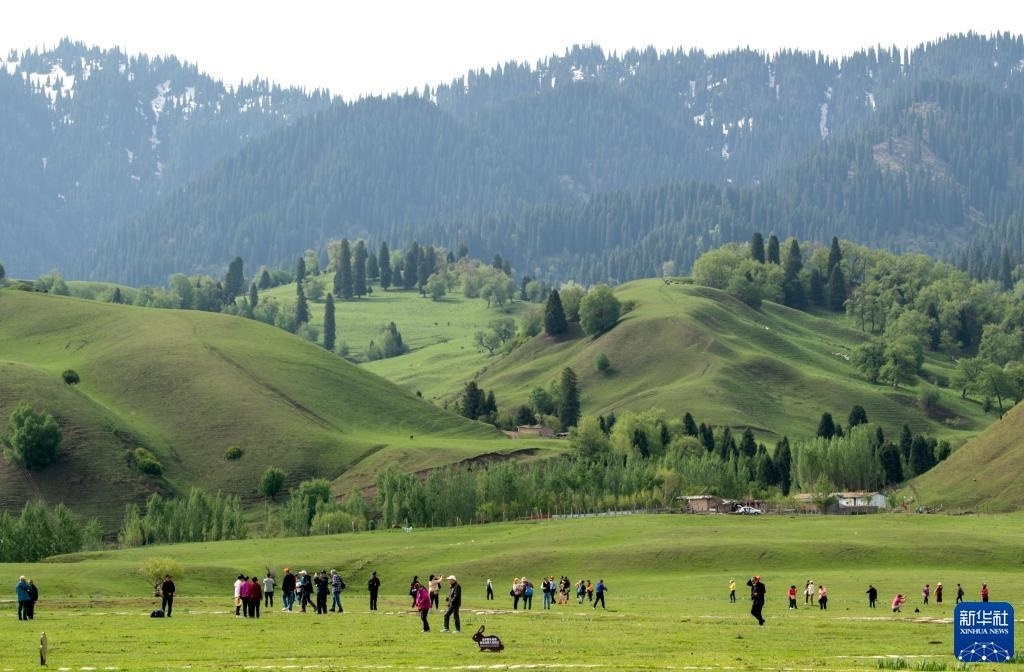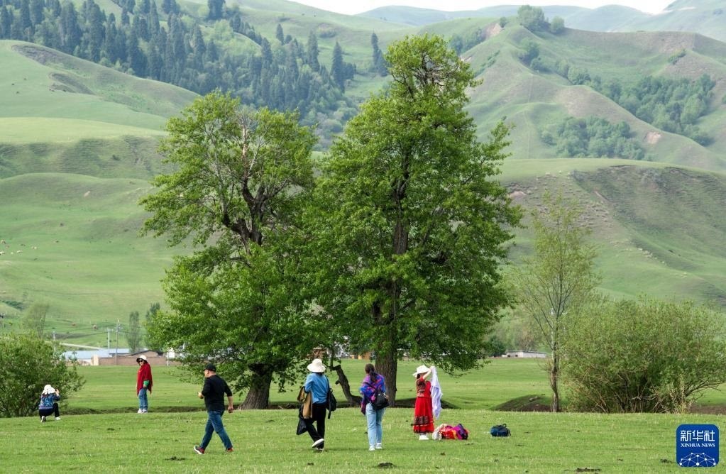 5月20日,游客在位于新疆新源縣的那拉提旅游風景區(qū)觀光。   新華社記者 郝昭 攝