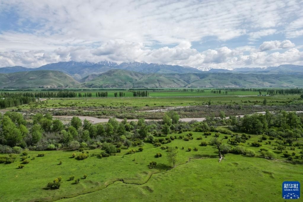 5月20日拍攝的那拉提河谷草原風光(無人機照片)。   新華社記者 郝昭 攝