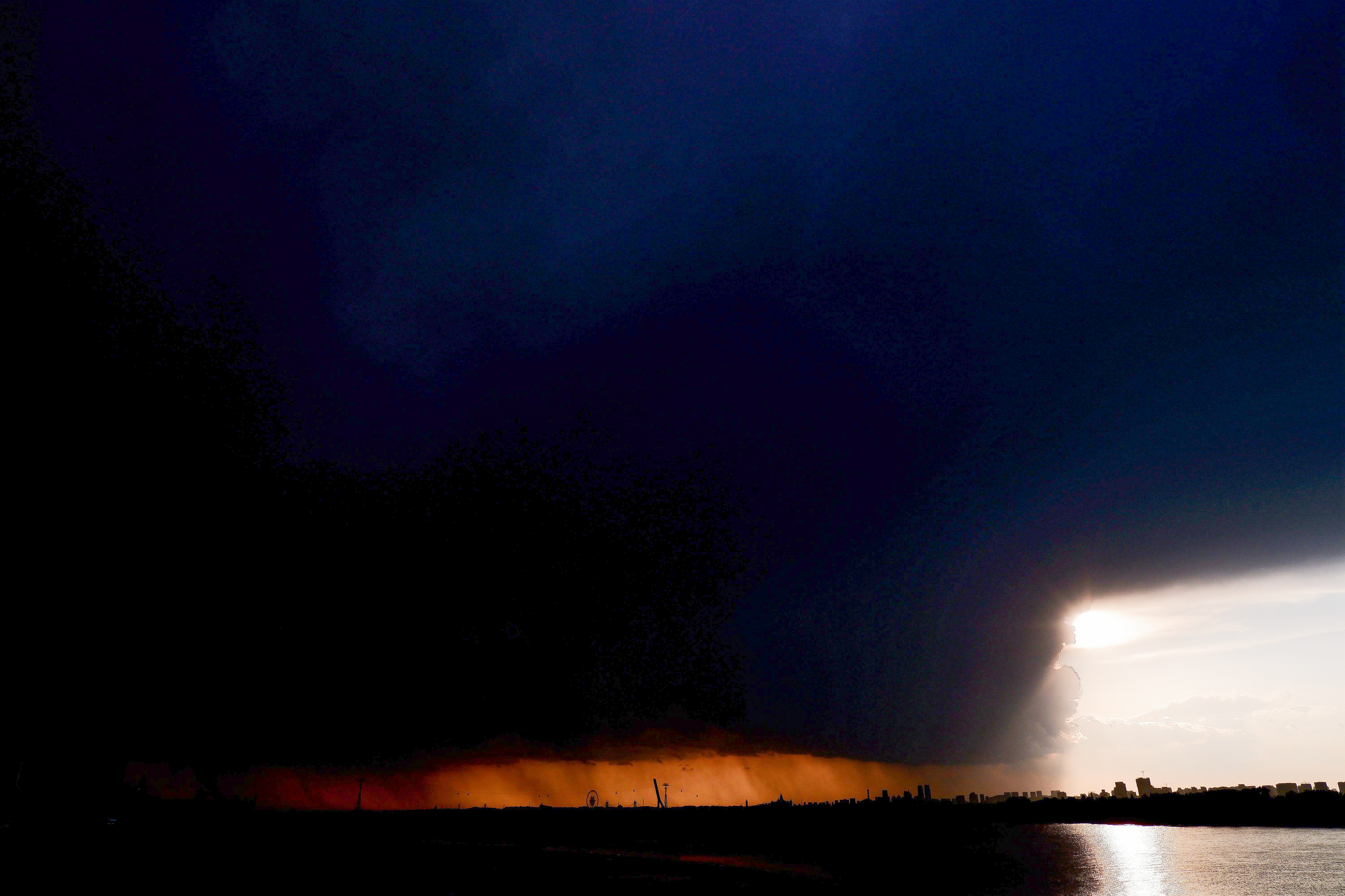 5月21日下午,黑龍江省哈爾濱市迎來強(qiáng)降雨天氣,整座城市被雷暴云籠罩,白晝?nèi)缫?,宛如上演科幻大片? (吳胡荼 攝)