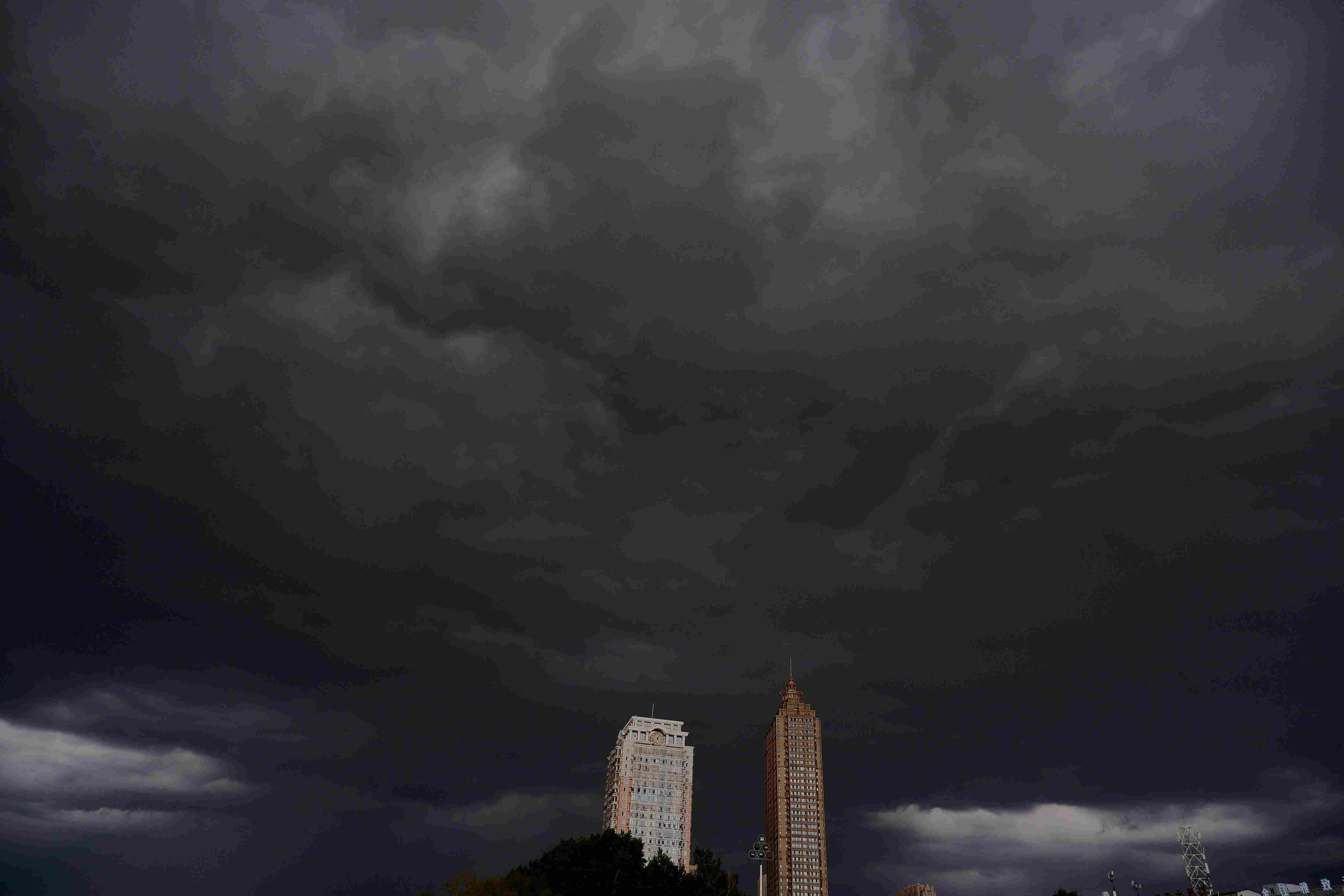 暴風(fēng)雨來襲!哈爾濱烏云壓城白晝?nèi)缫?/strong>