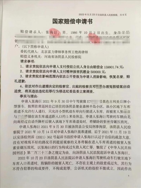 ·清潔工躺車庫甬道午睡被碾身亡,司機被羈押366天后獲判無罪,申請國家賠償。