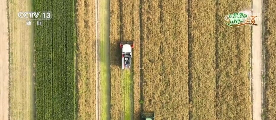 總臺記者 楊海靈:我現(xiàn)在來到了衡水市安平縣,在經(jīng)歷了油菜花明艷的金黃之后,整個田地披上了一層淡淡的黃色。從芳香變?yōu)楣麑?,這里的萬畝油菜籽迎來大面積收獲。很多人見過油菜花,對于油菜籽可能并不熟悉。我手里拿的就是正在收獲的油菜籽,顆粒就在這細長的豆莢當(dāng)中。農(nóng)民們豐收的喜悅就在這一鼓作氣的干勁里,趁著天氣晴好,聯(lián)合收割機來回穿梭,飽滿的油菜豆莢連著秸稈被收進機器,很快,細細密密的油菜籽就被收入機囊當(dāng)中。