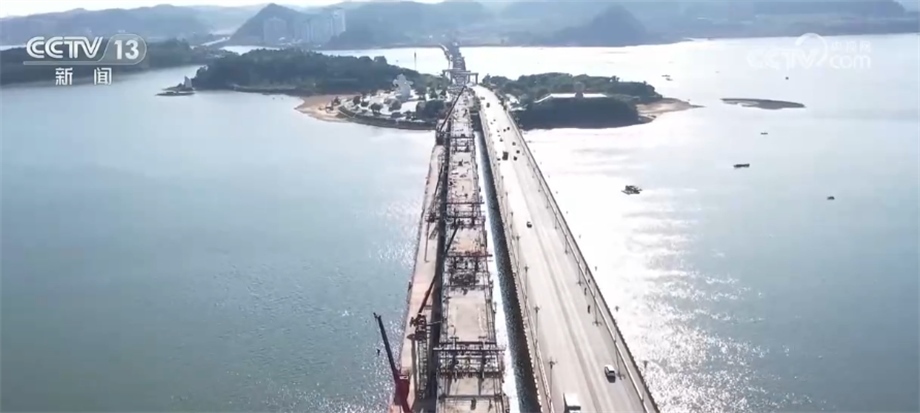 28日凌晨,廣西防城港西灣海面上燈火通明。在防東鐵路西灣跨海雙線特大橋施工現(xiàn)場(chǎng),隨著施工人員完成連續(xù)梁合龍段混凝土澆筑,這座大橋6聯(lián)連續(xù)梁全部完成合龍。西灣跨海雙線特大橋全長(zhǎng)7518米,共設(shè)計(jì)26個(gè)橋墩。防東鐵路正線長(zhǎng)46.897公里,設(shè)計(jì)時(shí)速200公里,是廣西沿海高鐵的延伸,也是連接中越兩國(guó)經(jīng)貿(mào)往來(lái)的重要鐵路項(xiàng)目。