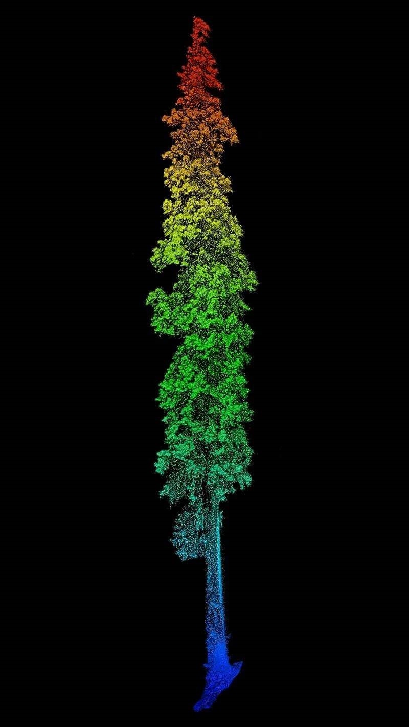 通過無人機(jī)與背包激光雷達(dá)相結(jié)合,對(duì)西藏柏木巨樹聚生區(qū)域進(jìn)行精準(zhǔn)測(cè)量,得到了巨樹群的精準(zhǔn)三維點(diǎn)云模型。經(jīng)過高度測(cè)量,發(fā)現(xiàn)其中一棵西藏柏木高達(dá)102.3米,該發(fā)現(xiàn)同時(shí)刷新了中國(guó)與亞洲的最高樹紀(jì)錄,躋身按樹種排名的世界最高樹列表,位列第二。研究團(tuán)隊(duì)獲取了該樹的精細(xì)三維點(diǎn)云數(shù)據(jù),測(cè)量其胸徑為293厘米,并采用無人機(jī)攝影的方式獲取了巨樹等身照。