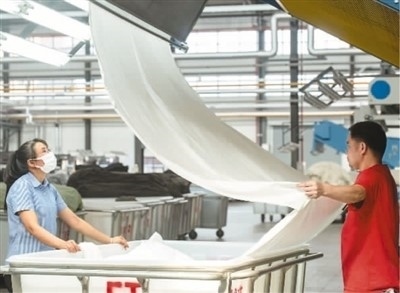 近日,在廣西梧州岑溪市大業(yè)鎮(zhèn)的西部(岑溪)創(chuàng)業(yè)園泰森新紡織產(chǎn)業(yè)集聚區(qū)某車間,染整智能生產(chǎn)線開足馬力高效作業(yè),工人們?cè)趰徫簧厦β担尸F(xiàn)出一片熱火朝天的生產(chǎn)景象。岑溪泰森項(xiàng)目以數(shù)字化轉(zhuǎn)型為主要發(fā)展方向,打造數(shù)字化轉(zhuǎn)型“5G+智慧工廠”行業(yè)新標(biāo)桿。 何華文攝(人民視覺)