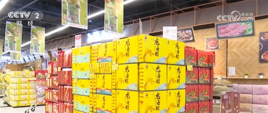 江蘇南京某超市食品銷售部經(jīng)理 周雯:今年各品牌推出了大黃米粽,它跟之前的粽子相比比較軟和比較糯,端午前兩周和前一周是高峰期,端午當天會是銷售的峰值。