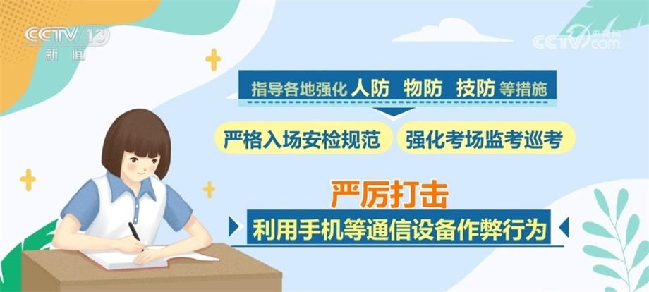同時,會同公安部、工業(yè)和信息化部等部門聯(lián)合開展打擊作弊專項行動,將防范手機作弊作為重中之重,多措并舉、綜合施策,指導各地強化人防、物防、技防等措施,嚴格入場安檢規(guī)范,強化考場監(jiān)考巡考,嚴厲打擊利用手機等通信設(shè)備作弊行為。對于在高考中存在作弊行為的考生和人員,將依法依規(guī)嚴肅處理,堅決維護高考的公平公正。