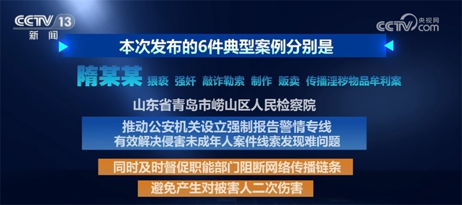隋某某猥褻、強(qiáng)奸、敲詐勒索、制作、販賣、傳播淫穢物品牟利案。山東省青島市嶗山區(qū)人民檢察院推動(dòng)公安機(jī)關(guān)設(shè)立強(qiáng)制報(bào)告警情專線,有效解決侵害未成年人案件線索發(fā)現(xiàn)難問題。同時(shí),及時(shí)督促職能部門阻斷網(wǎng)絡(luò)傳播鏈條,避免產(chǎn)生對(duì)被害人二次傷害。