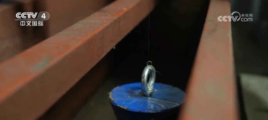 中國(guó)船舶外高橋造船大型郵輪項(xiàng)目技術(shù)副經(jīng)理 李嘉寧:這是一個(gè)擺錘,它很重的。這個(gè)是一個(gè)油槽,里面放滿油,上面布置鋼尺,會(huì)精確地讀數(shù)。當(dāng)船發(fā)生傾斜之后,(通過(guò))擺錘移動(dòng)多少的距離就可以知道這個(gè)船橫傾的狀態(tài)。郵輪傾斜試驗(yàn)獲得船舶的重量和重心這兩個(gè)數(shù)據(jù),是大型郵輪最重要的兩個(gè)數(shù)據(jù)指標(biāo),因?yàn)樗鼪Q定了這條船將來(lái)到海上航行的穩(wěn)性安全。
