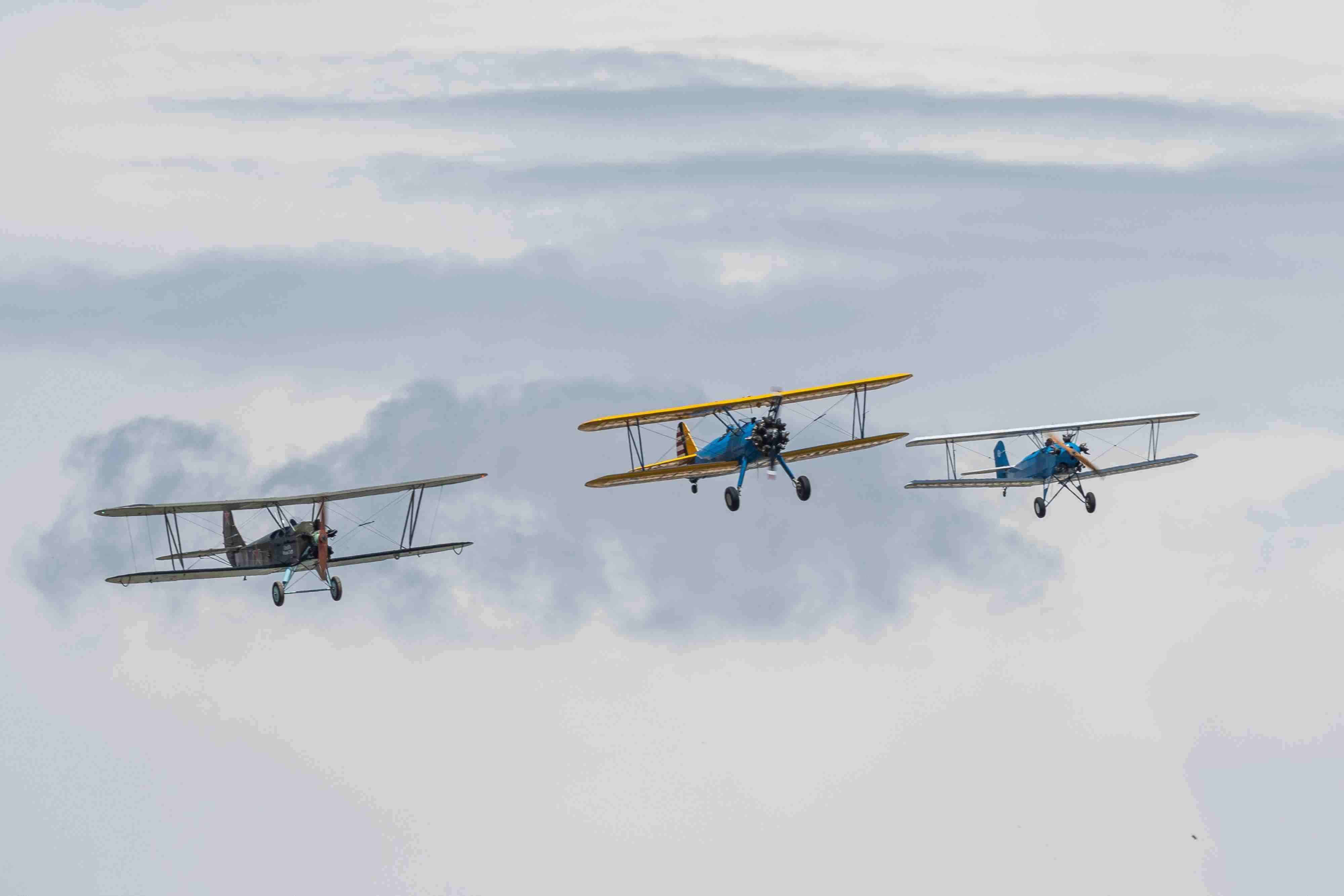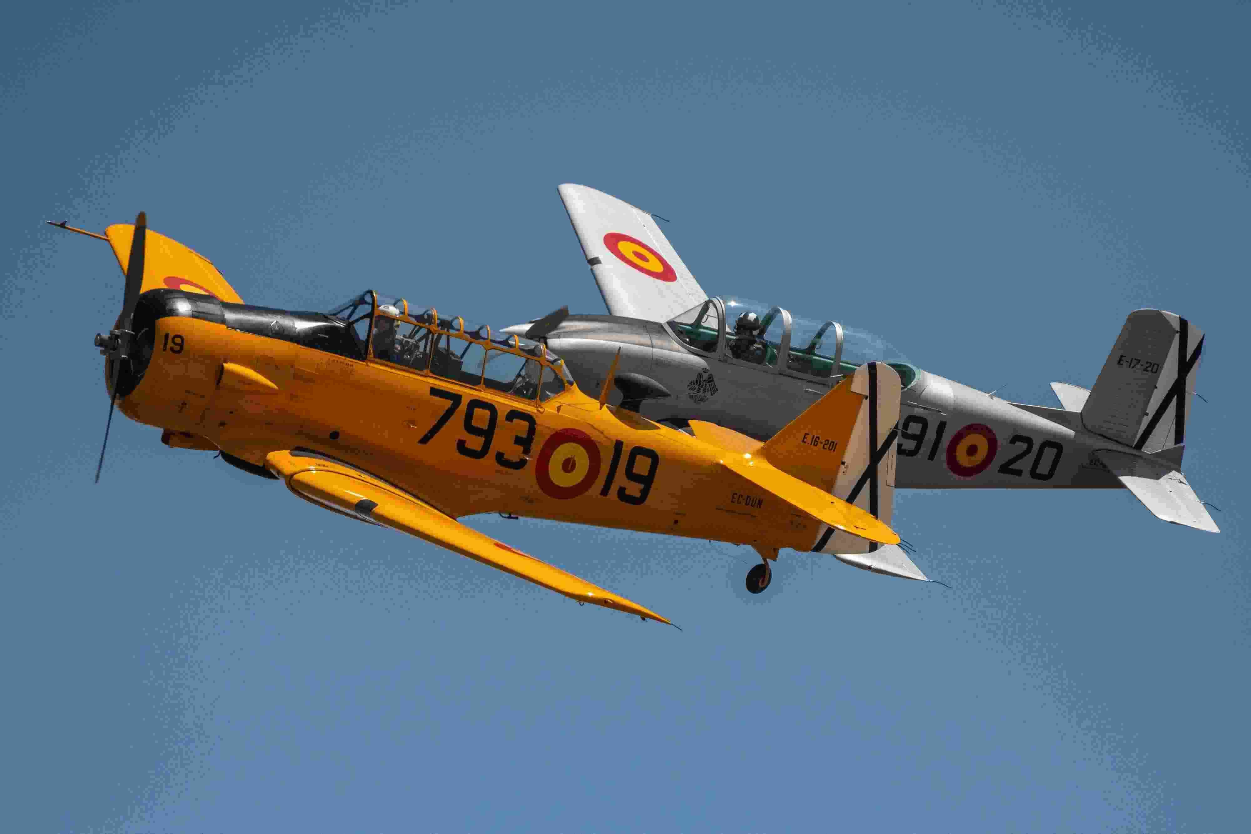 當(dāng)?shù)貢r(shí)間2023年6月4日,西班牙馬德里舉行老式飛機(jī)航空展,多型老式飛機(jī)進(jìn)行飛行表演。 視覺(jué)中國(guó)