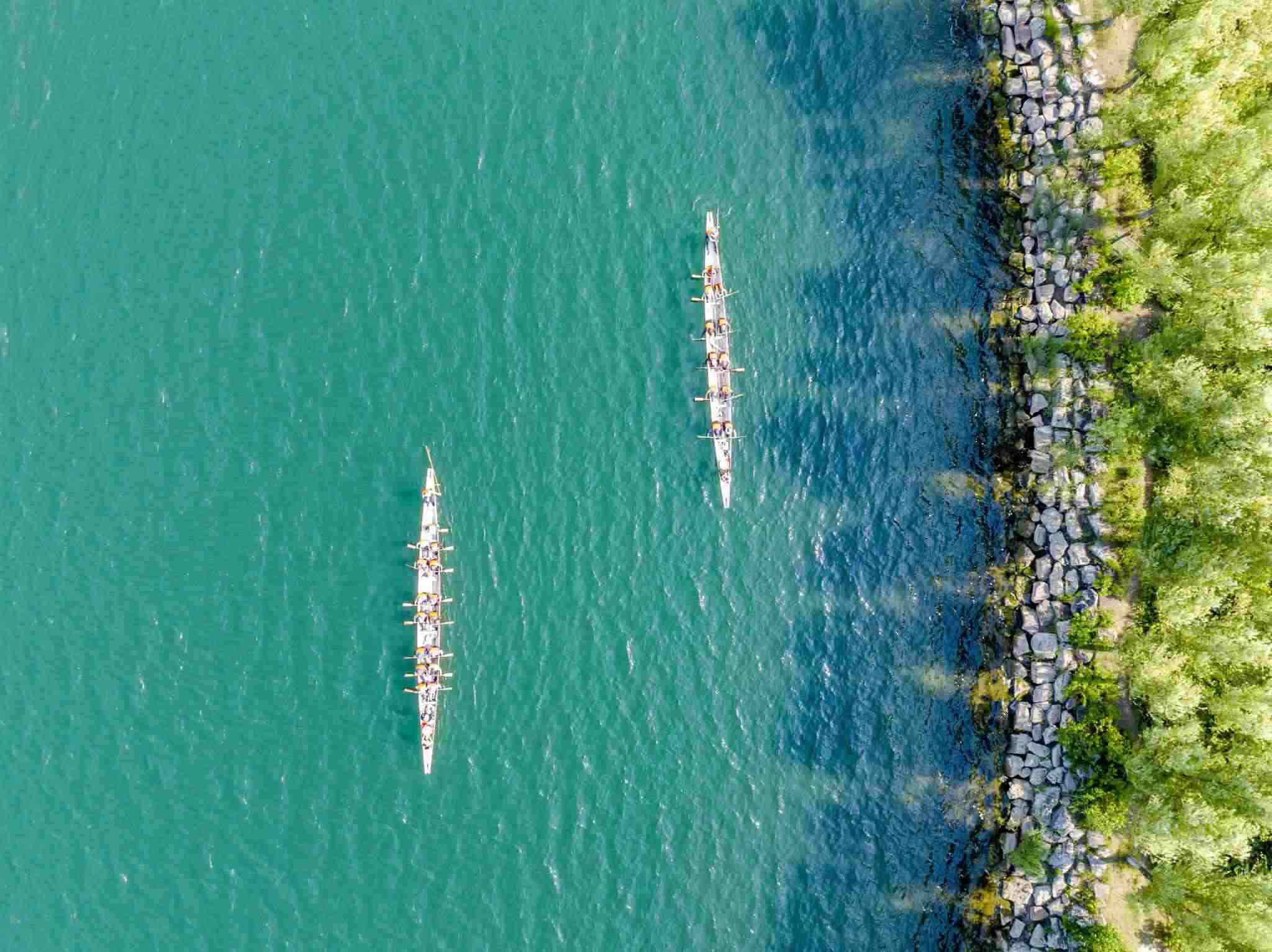 2023年6月8日,江蘇連云港,東海縣西雙湖風(fēng)景區(qū),多支龍舟隊(duì)在西雙湖水域進(jìn)行訓(xùn)練,積極備戰(zhàn)端午龍舟賽。視覺中國(guó)