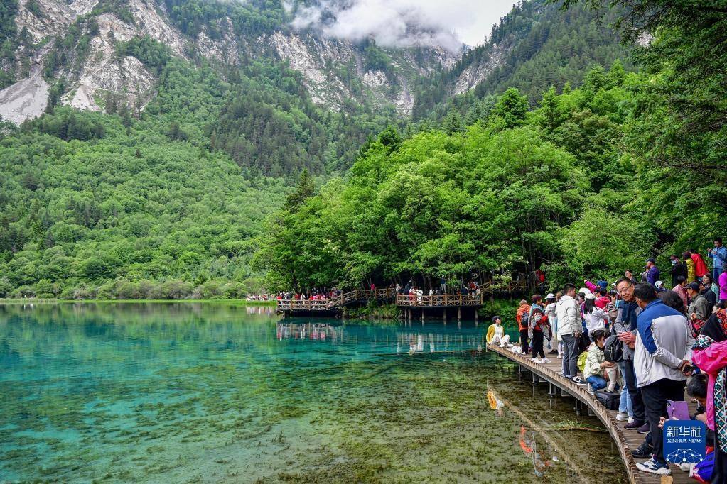九寨溝景區(qū)五花海景點人流如織(6月7日攝)。