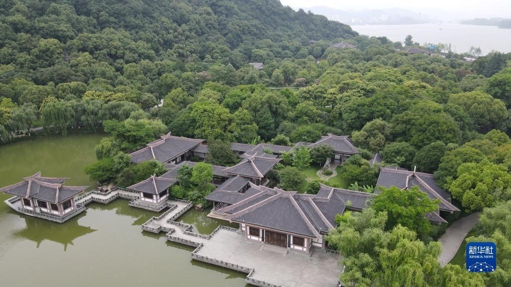 這是6月3日拍攝的位于浙江省杭州市富陽區(qū)的富春山館(無人機照片)。新華社記者 張端 攝