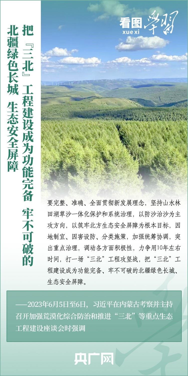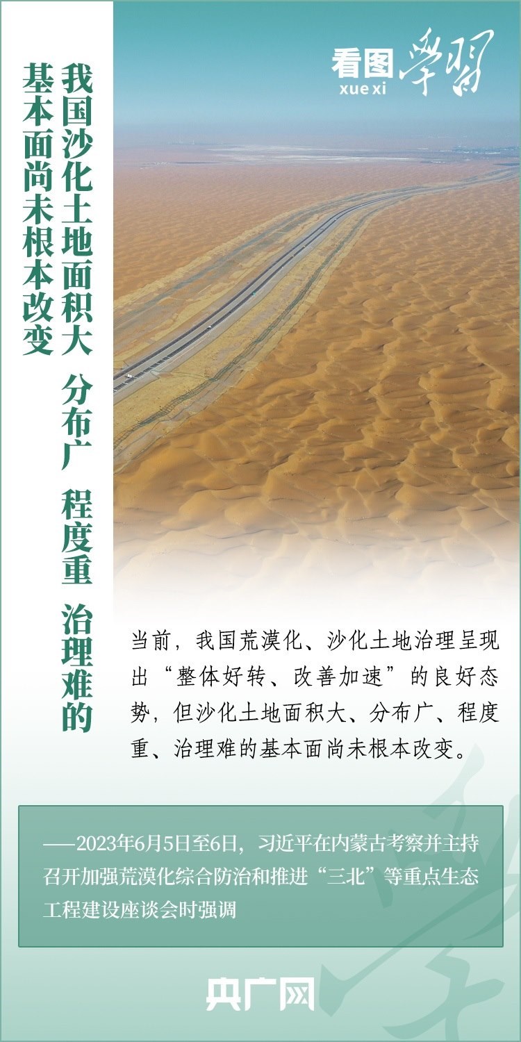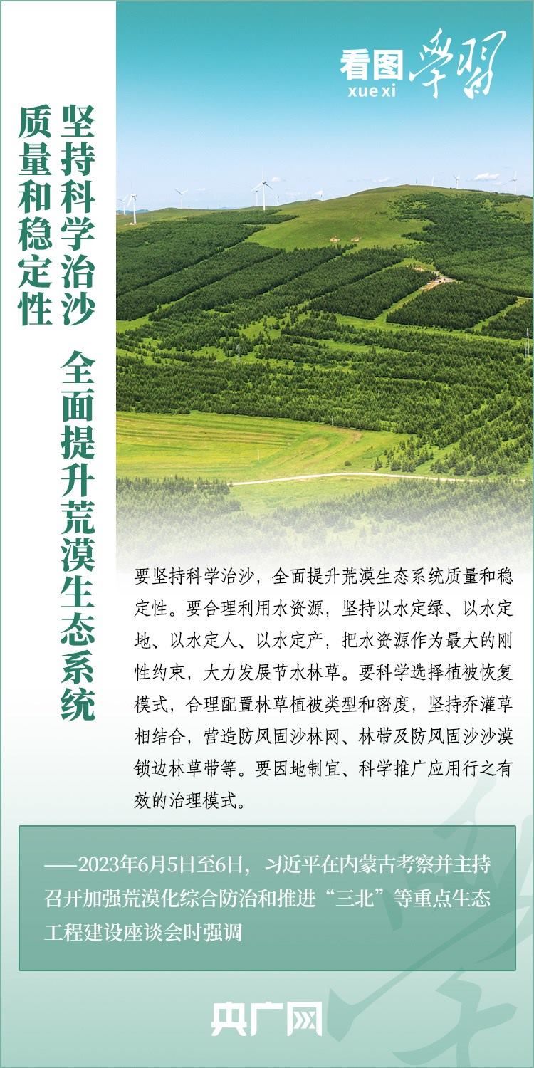 6月5日至6日,習(xí)近平總書(shū)記來(lái)到內(nèi)蒙古自治區(qū)巴彥淖爾市,深入自然保護(hù)區(qū)、現(xiàn)代農(nóng)業(yè)示范園區(qū)、林場(chǎng)、水利部門(mén)等考察調(diào)研,主持召開(kāi)加強(qiáng)荒漠化綜合防治和推進(jìn)“三北”等重點(diǎn)生態(tài)工程建設(shè)座談會(huì)并發(fā)表重要講話??倳?shū)記強(qiáng)調(diào),要勇?lián)姑?、不畏艱辛、久久為功,努力創(chuàng)造新時(shí)代中國(guó)防沙治沙新奇跡,把祖國(guó)北疆這道萬(wàn)里綠色屏障構(gòu)筑得更加牢固,在建設(shè)美麗中國(guó)上取得更大成就。一起來(lái)學(xué)習(xí)!