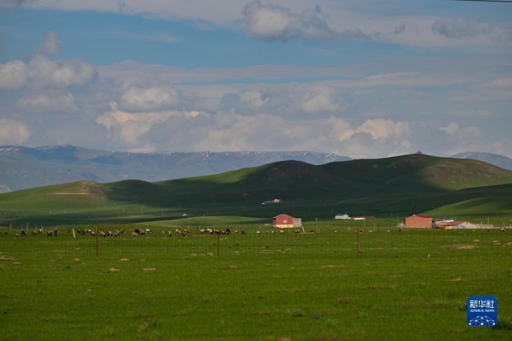 這是6月9日在青海省黃南藏族自治州澤庫縣拍攝的高原草原。