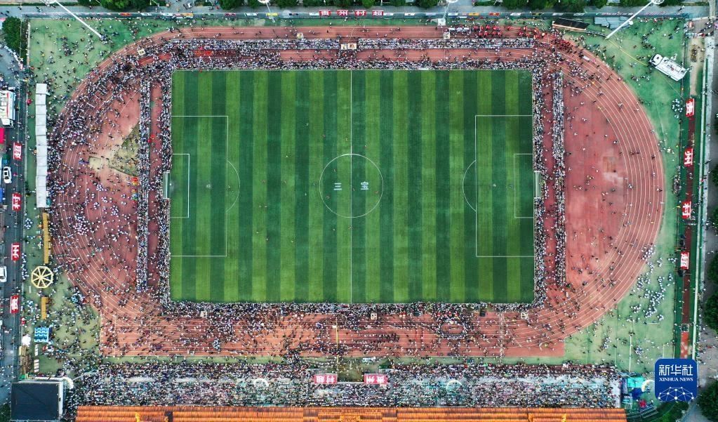 6月10日拍攝的貴州“村超”足球比賽現(xiàn)場(無人機照片)。   新華社記者 楊文斌 攝