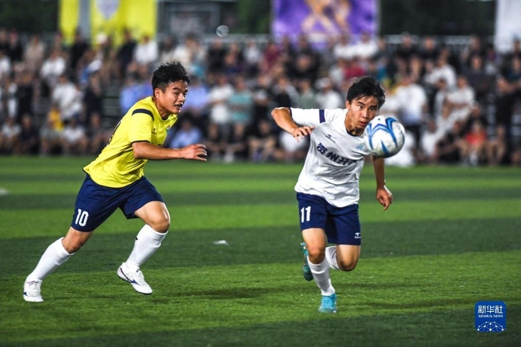 6月9日,鳳凰村足球隊與新中村足球隊在“村超”比賽中。   新華社記者 楊文斌 攝
