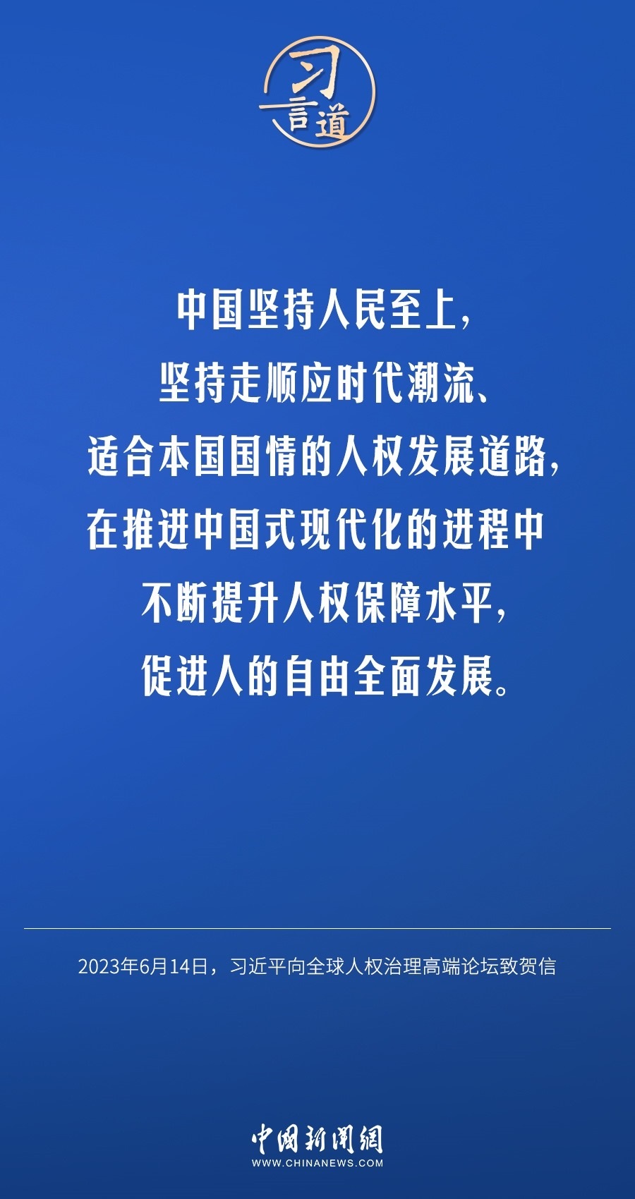6月14日,國家主席習(xí)近平向全球人權(quán)治理高端論壇致賀信。他指出——