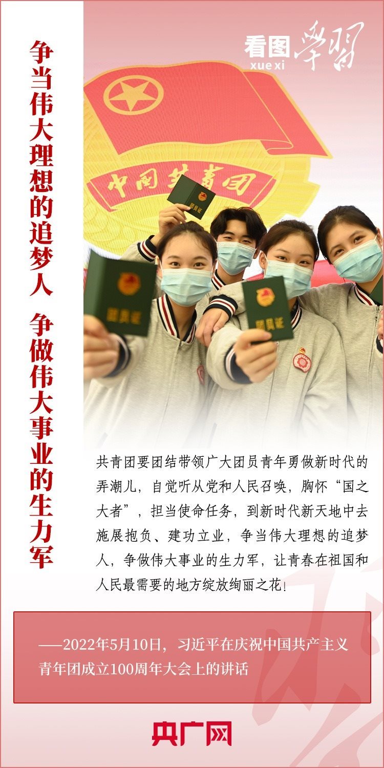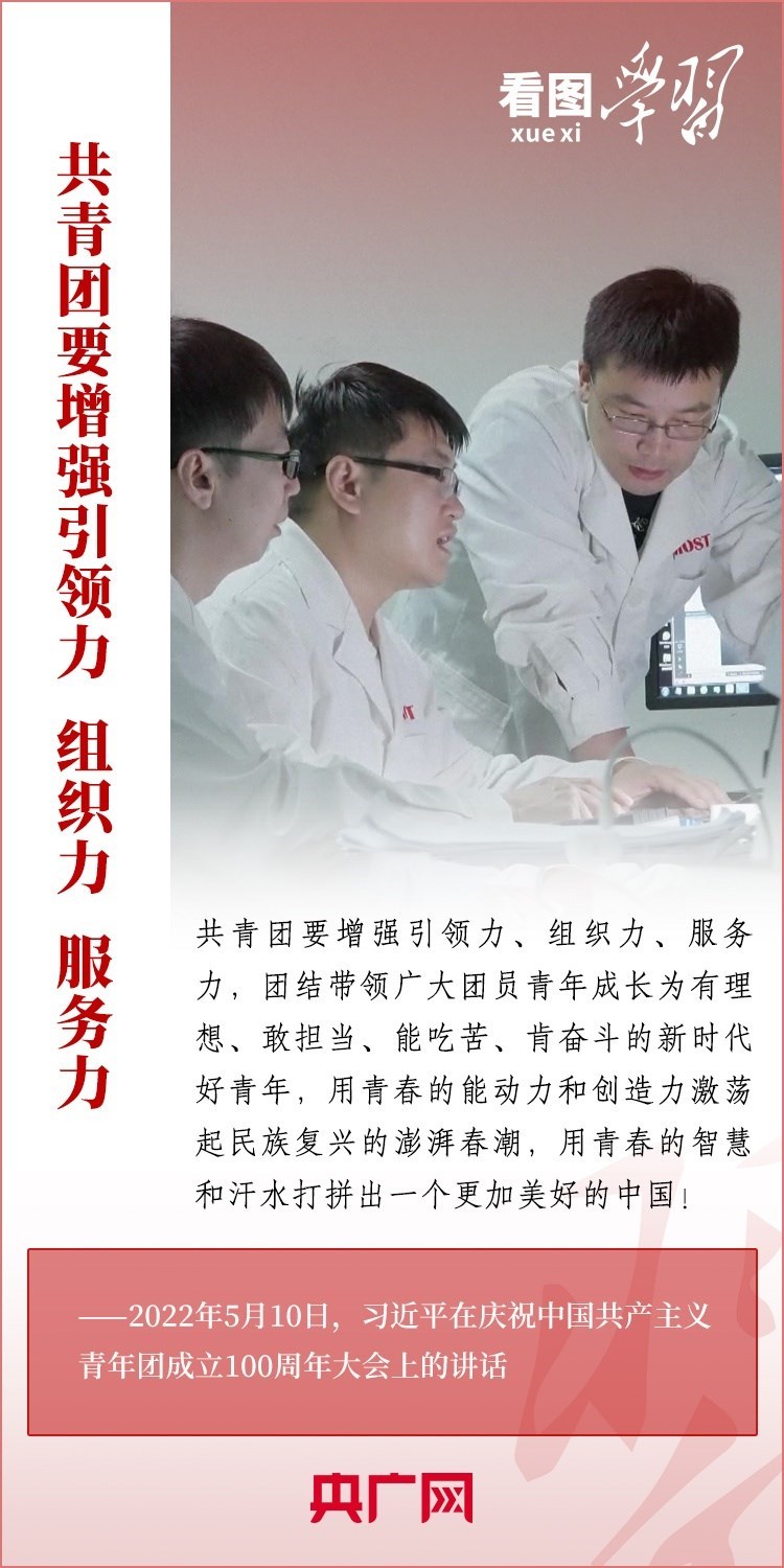 中國共青團是中國青年運動的先鋒隊,是黨的忠實助手和可靠后備軍。習近平總書記高度重視共青團工作,強調(diào)共青團要增強引領力、組織力、服務力,團結(jié)帶領廣大團員青年成長為有理想、敢擔當、能吃苦、肯奮斗的新時代好青年,用青春的能動力和創(chuàng)造力激蕩起民族復興的澎湃春潮,用青春的智慧和汗水打拼出一個更加美好的中國!