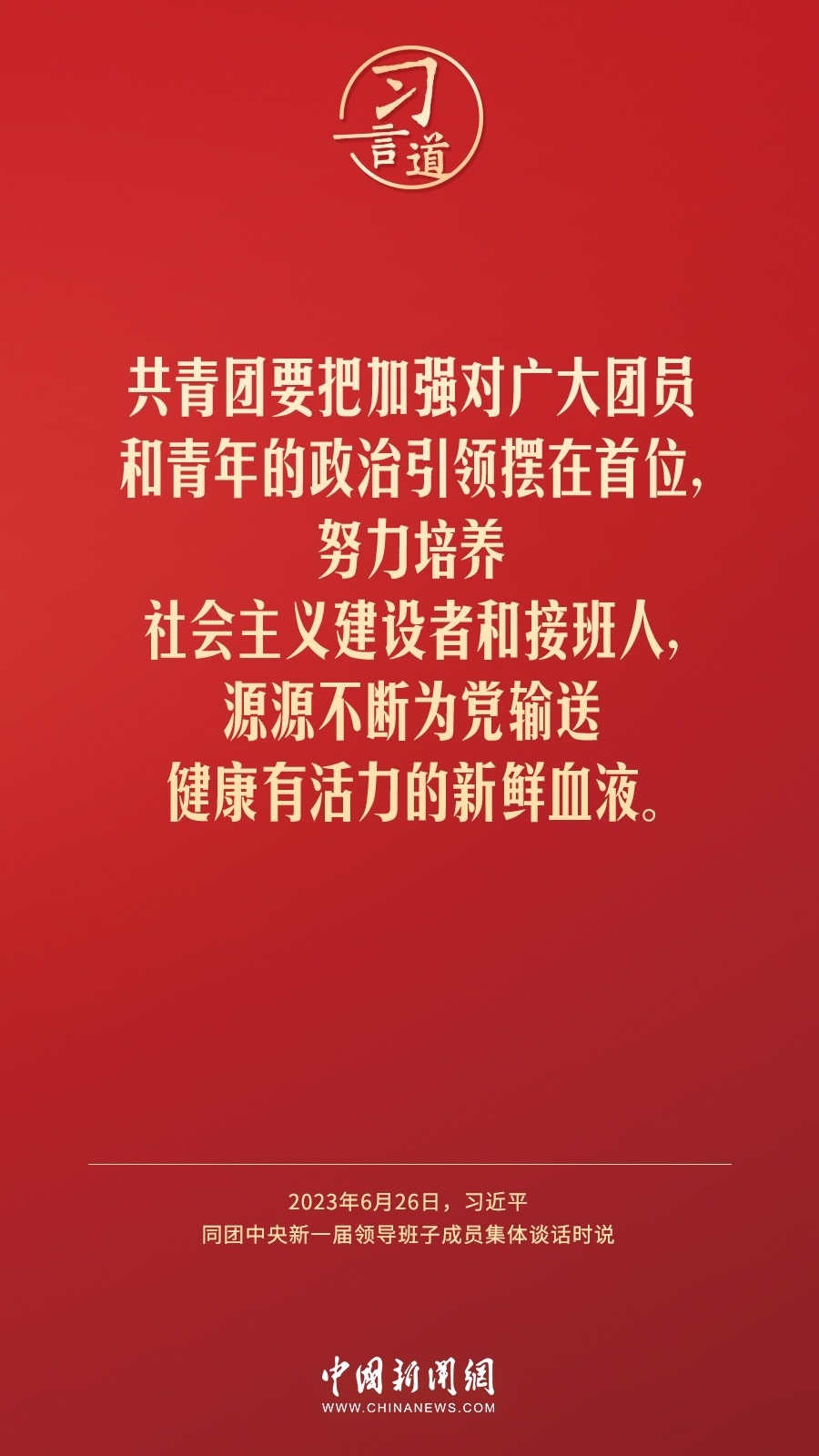 6月26日,中共中央總書記、國(guó)家主席、中央軍委主席習(xí)近平在中南海同團(tuán)中央新一屆領(lǐng)導(dǎo)班子成員集體談話并發(fā)表重要講話。習(xí)近平指出——