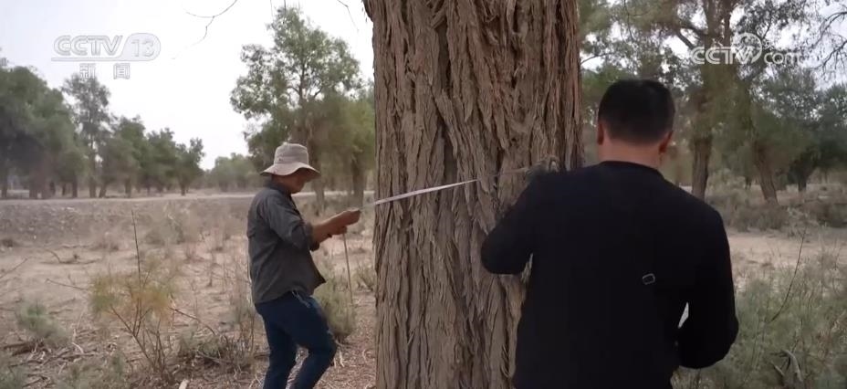 有人守護(hù)胡楊林的生長(zhǎng)環(huán)境,也有人專門記錄胡楊樹(shù)的生長(zhǎng)情況。在沙雅縣境內(nèi)的胡楊林里分布著很多超過(guò)百歲樹(shù)齡的胡楊樹(shù),最近一段時(shí)間,新疆林業(yè)規(guī)劃院的科研人員正在對(duì)這里的胡楊林古樹(shù)群進(jìn)行調(diào)查建檔。