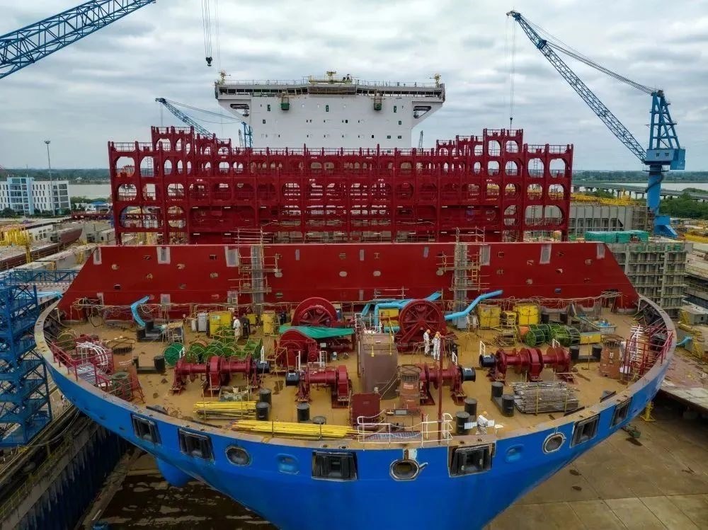 “目前,我們的船舶建造從單一產(chǎn)品發(fā)展到全產(chǎn)品全覆蓋,集成了全球供應(yīng)鏈,國產(chǎn)化率也在不斷提高?!标惤ㄩ耪f。