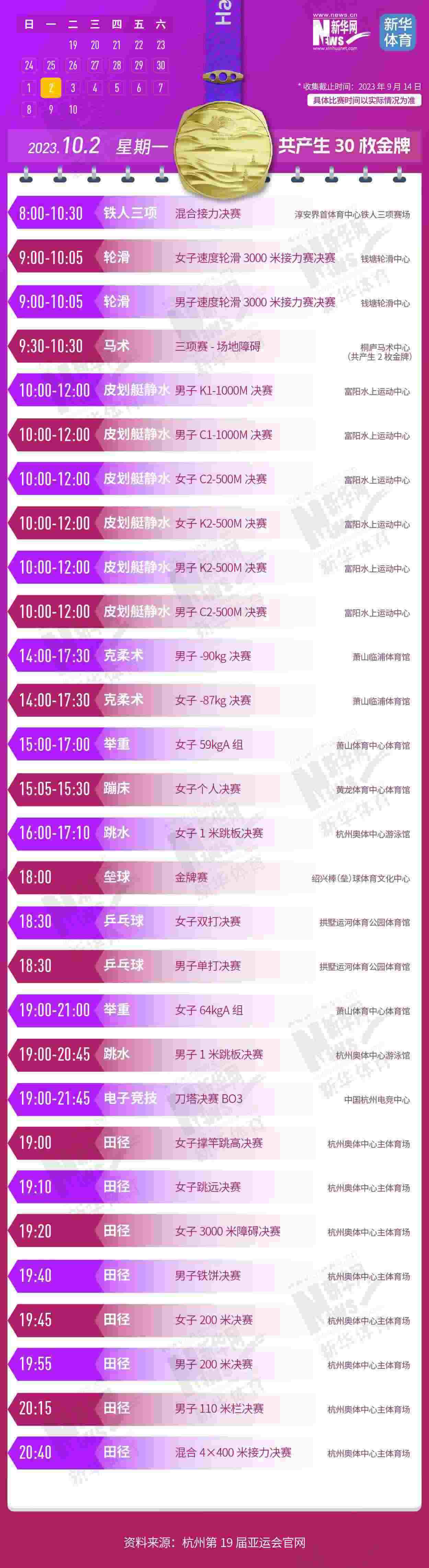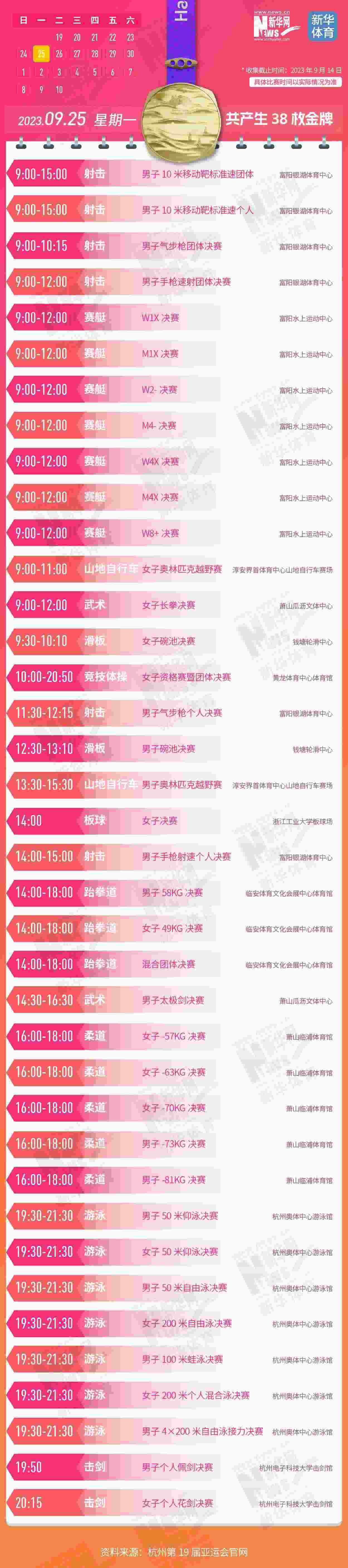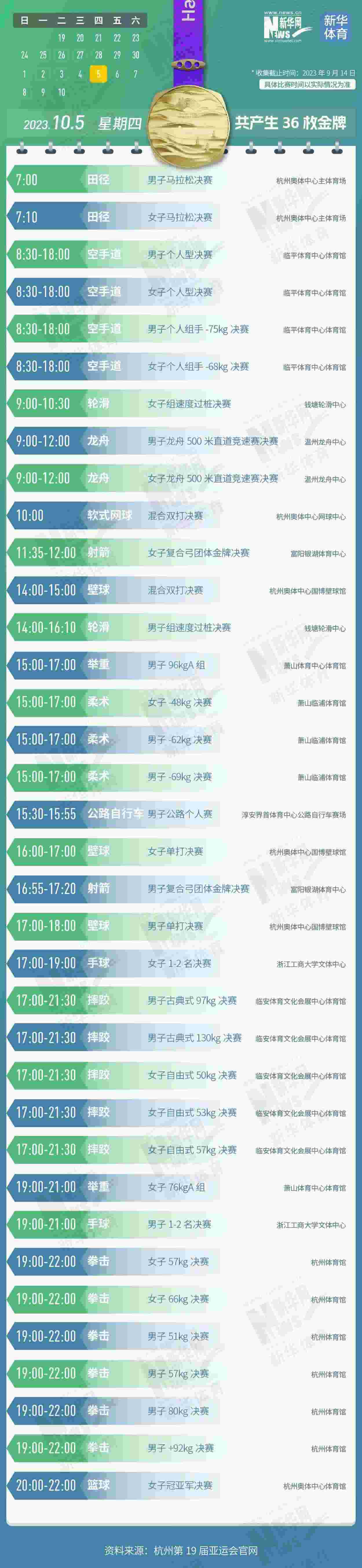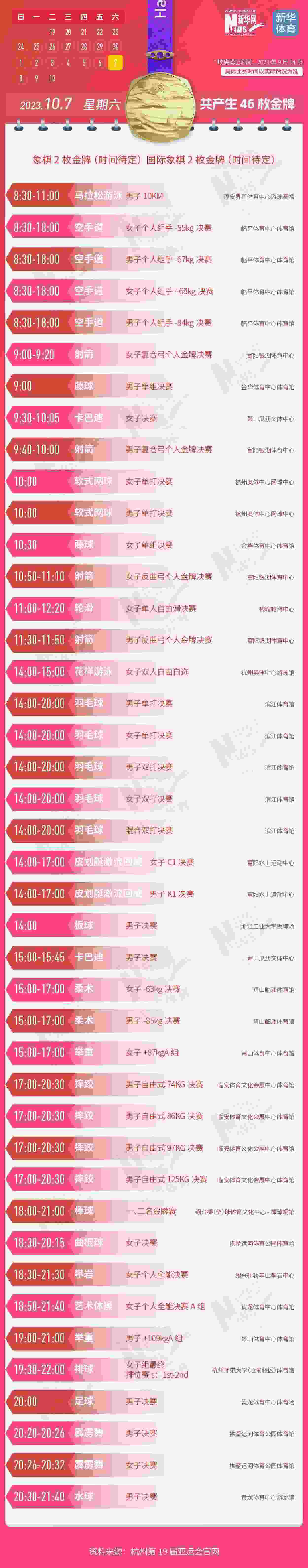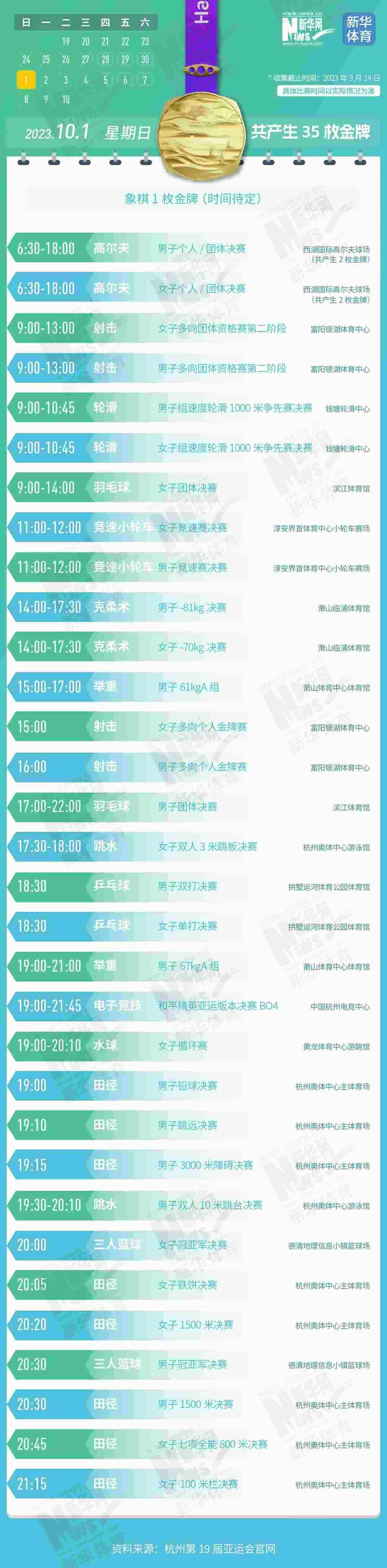 杭州第19屆亞運會即將開幕。本屆亞運會將產生481枚金牌,快收藏這份金牌賽事日歷,助你精準觀賽!