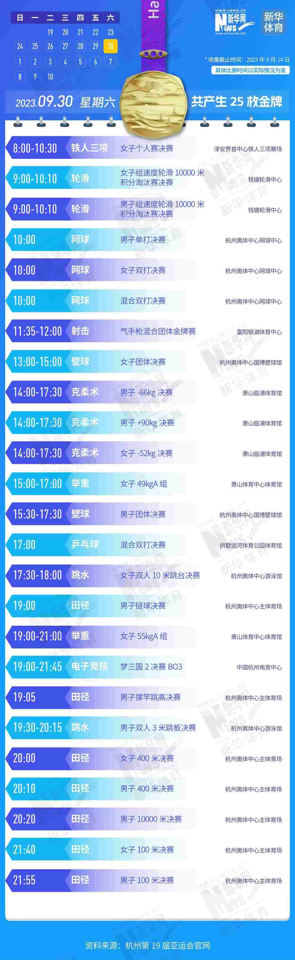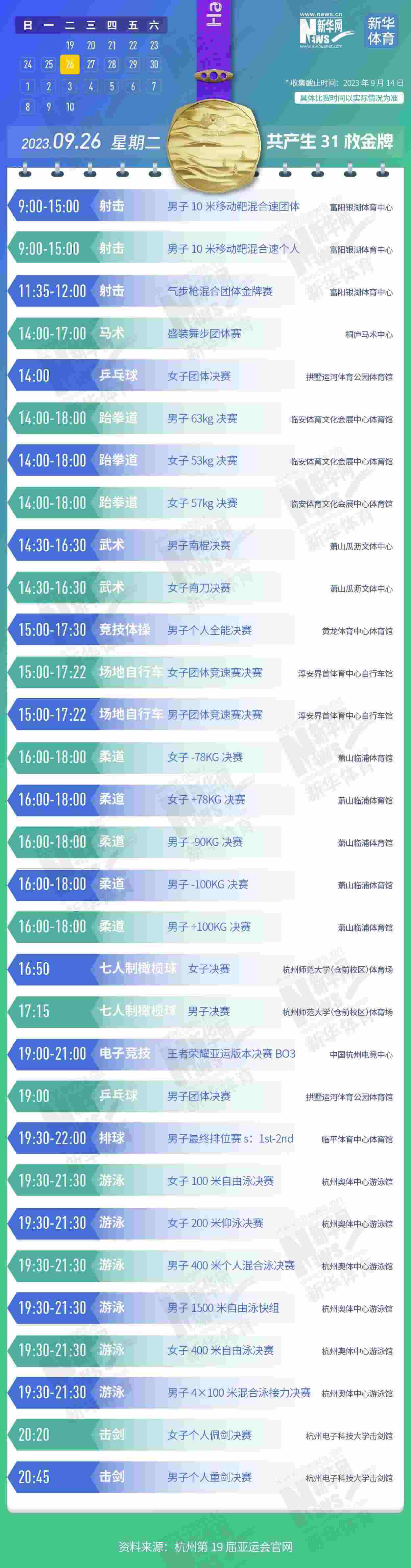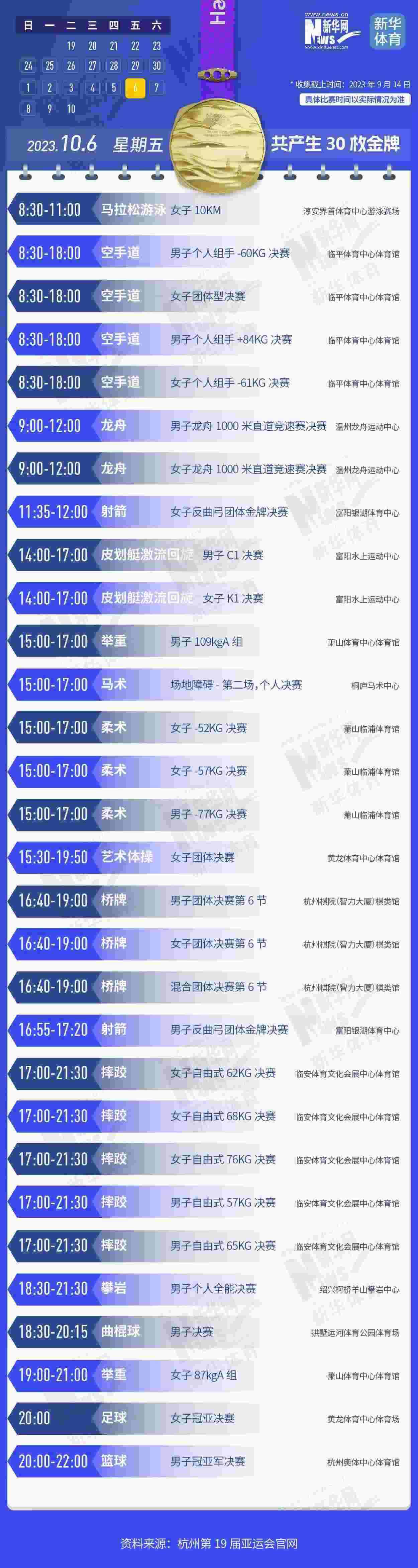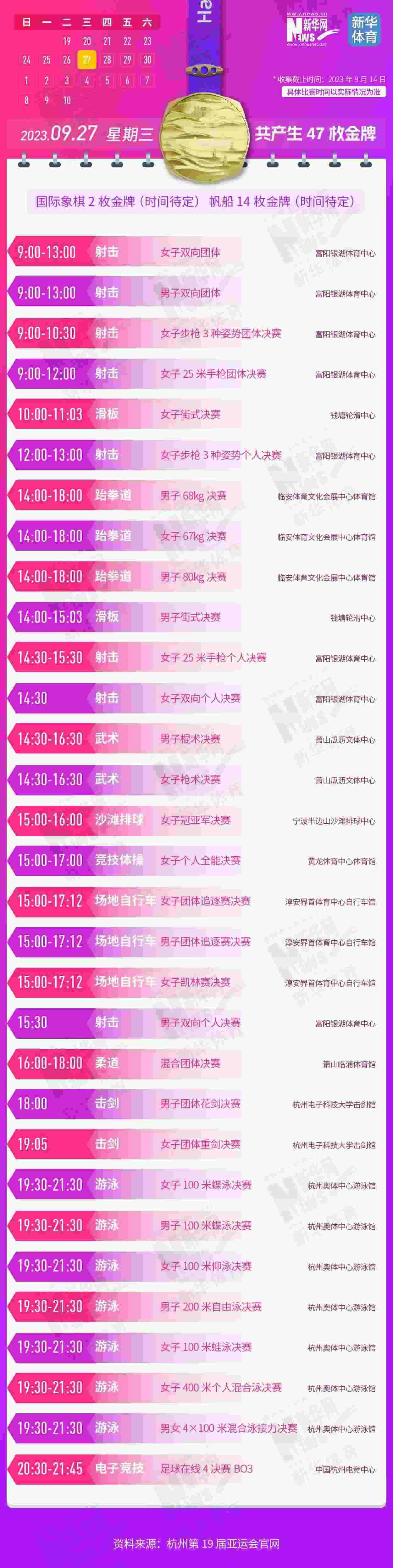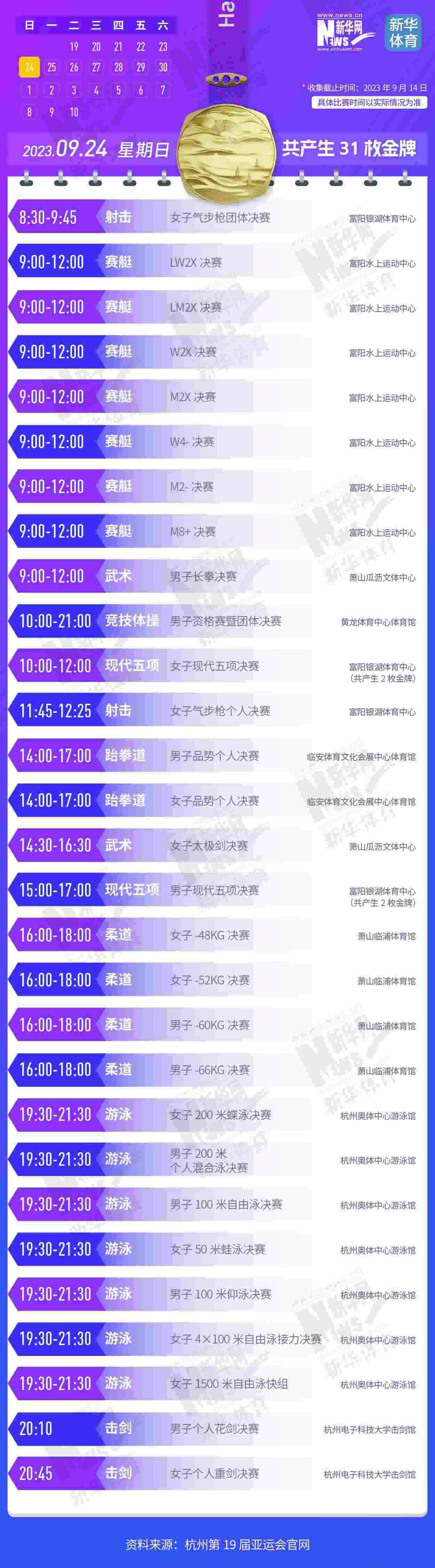 杭州第19屆亞運會即將開幕。本屆亞運會將產生481枚金牌,快收藏這份金牌賽事日歷,助你精準觀賽!