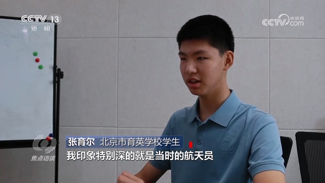北京市育英學(xué)校學(xué)生張育爾:“我印象特別深的是當(dāng)時(shí)航天員拿針筒把氣泡注射到水里,然后形成了一個(gè)類(lèi)似于放大鏡的視覺(jué)效果,看到這個(gè)感覺(jué)很新鮮、很科幻,一開(kāi)始是好奇心驅(qū)動(dòng)了,后來(lái)就開(kāi)始了解這方面的東西?!?/p>