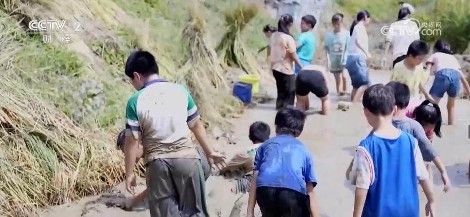為慶?!熬扌偷尽痹嚪N成功,當?shù)剡€舉行了一場“扮禾抓魚”比賽,村民們分成幾組,進行人工收割、踩禾桶脫粒、扎稻草。孩子們則跳進水溝抓魚,感受田園樂趣。