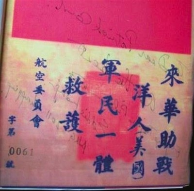 當(dāng)時,每名飛虎隊(duì)隊(duì)員走向戰(zhàn)機(jī)時,都深知自己或許永不能返航。他們身上都帶著寫有“來華助戰(zhàn)洋人,軍民一體救護(hù)”的“血符”,這也是飛虎隊(duì)隊(duì)員與中國軍民之間的生死契約,一旦發(fā)現(xiàn)有落難的美軍飛行員,大家會不惜代價,全力救助。