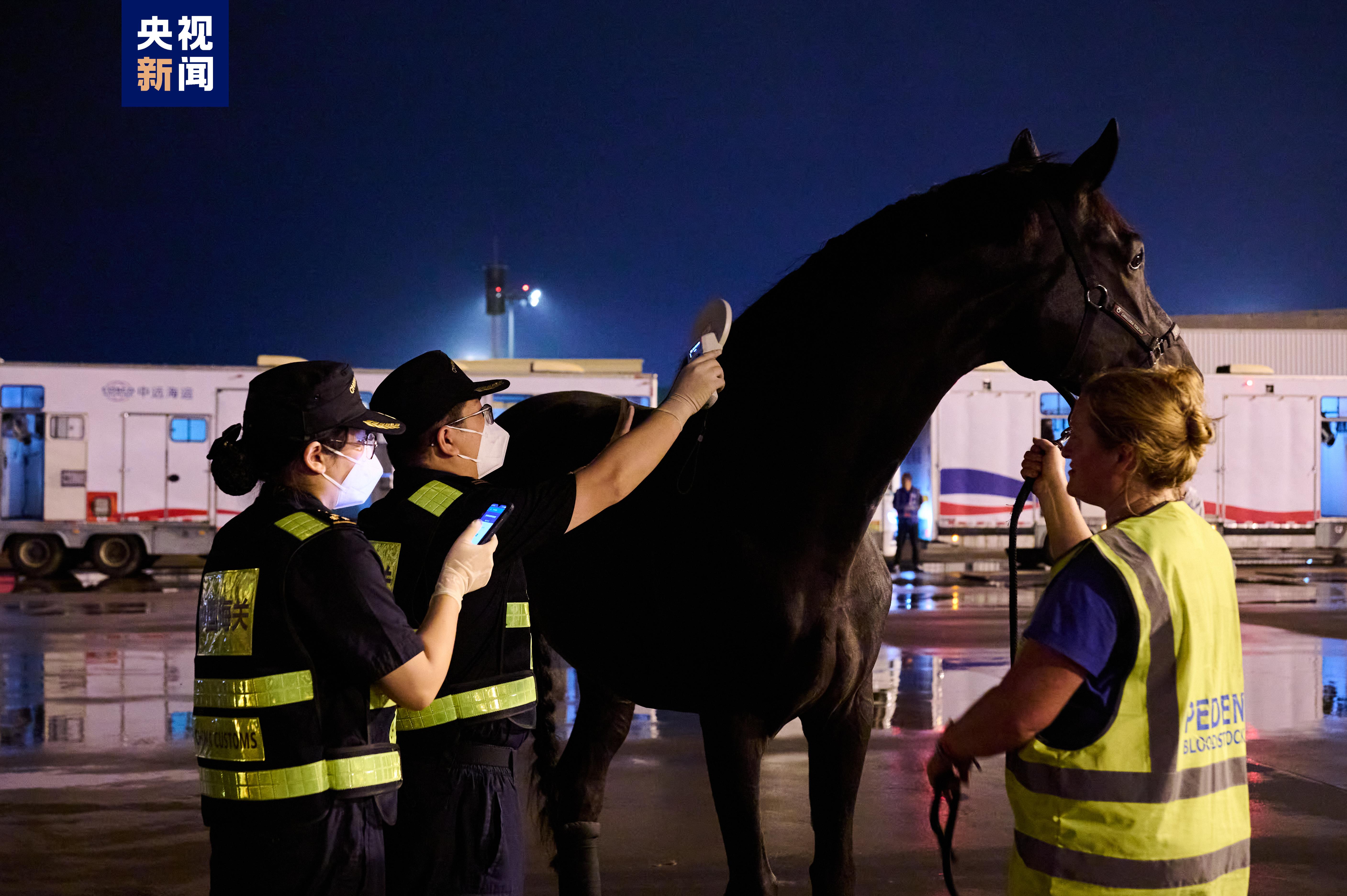 杭州亞運(yùn)會(huì)賽事總指揮部馬術(shù)項(xiàng)目管理指揮中心相關(guān)負(fù)責(zé)人表示,“這些參賽馬經(jīng)過(guò)了十幾個(gè)小時(shí)的長(zhǎng)途飛行,狀態(tài)比較疲憊,我們要在精準(zhǔn)查驗(yàn)、確保安全的同時(shí),盡可能縮短通關(guān)轉(zhuǎn)運(yùn)時(shí)間,保障馬匹福利?!睘榇耍贾菔捝絿?guó)際機(jī)場(chǎng)停機(jī)坪提前用圍擋設(shè)置了專(zhuān)門(mén)的馬匹裝卸轉(zhuǎn)運(yùn)場(chǎng)地,完成場(chǎng)地消殺,專(zhuān)用運(yùn)輸車(chē)輛和設(shè)備提前進(jìn)入。海關(guān)就近設(shè)置隨機(jī)人員通關(guān)專(zhuān)用通道,縮短人、馬分離時(shí)間,保障隨機(jī)人員與參賽馬同步通關(guān),并創(chuàng)新開(kāi)發(fā)參賽馬芯片識(shí)別程序,運(yùn)用“賽馬檢疫在線”智慧監(jiān)管系統(tǒng)大幅提升參賽馬身份驗(yàn)核效率。同時(shí),通過(guò)優(yōu)化流程、協(xié)同運(yùn)行,確保馬匹裝備、飼料、獸藥、馬醫(yī)療器械等隨機(jī)物資快速通關(guān)。參賽馬采用“快進(jìn)快出”的方式,在同等動(dòng)物衛(wèi)生條件下參賽,比賽結(jié)束后立即出境,實(shí)現(xiàn)賽馬“順利入境、健康參賽、安全返回”。