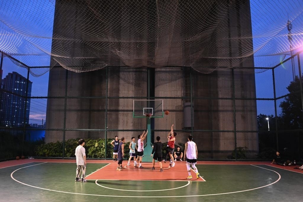 2022年9月20日,市民在位于高鐵橋下的錢江世紀城體育公園打籃球。新華社記者黃宗治攝
