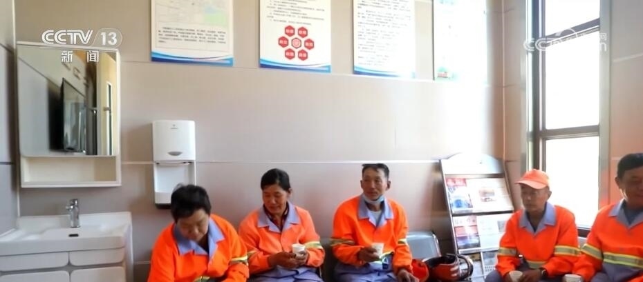 中午12時,東營市的最高氣溫升至38℃左右。在蒙山路一處專門為環(huán)衛(wèi)工人“量身打造”的休息室,環(huán)衛(wèi)工人們可以隨時到這里避暑納涼,休息室里有空調(diào)、冰箱、飲水機等各種設施。