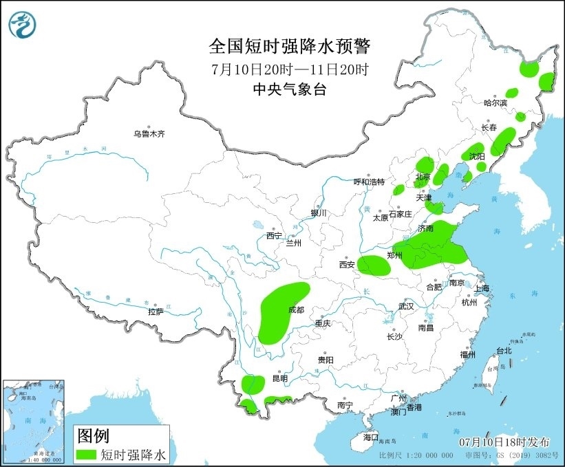 央視網(wǎng)消息:中央氣象臺7月10日18時繼續(xù)發(fā)布強對流天氣藍色預警,預計7月10日20時至11日20時,黑龍江東北部、河北北部、北京東南部、天津北部、山東南部、河南東部、安徽北部、江蘇北部、川西高原南部和四川盆地西南部等地的部分地區(qū)將有8-10級雷暴大風或冰雹天氣;黑龍江東部、吉林東部、遼寧、陜西東南部、河北中北部、北京東部、天津北部、山東西北部和南部、河南東部和西南部、安徽北部、江蘇中北部、川西高原、四川盆地西部、云南中南部等地的部分地區(qū)將有短時強降水天氣,小時雨量30-50毫米,局地可達60毫米以上。