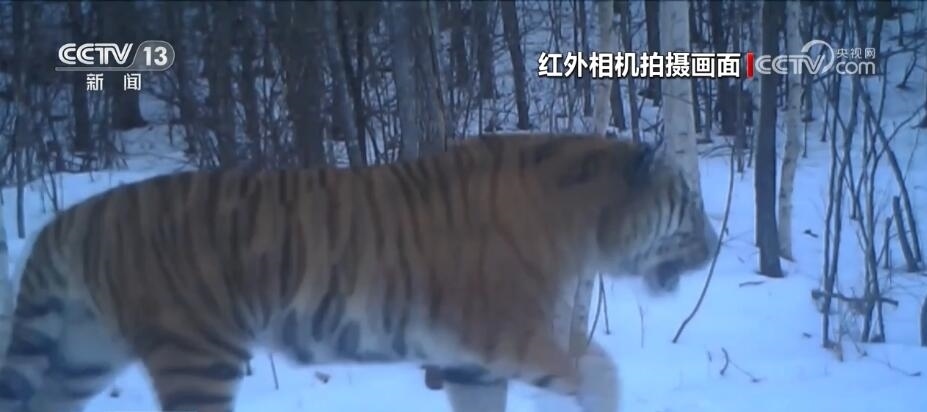 央視網(wǎng)消息:近日,工作人員在東北紅豆杉國(guó)家級(jí)自然保護(hù)區(qū)核心區(qū)、東北虎豹國(guó)家公園穆棱園區(qū)內(nèi)布設(shè)的野外紅外線相機(jī)中,再次發(fā)現(xiàn)了野生東北虎“完達(dá)山一號(hào)”今年4月份在該區(qū)域活動(dòng)的清晰影像。