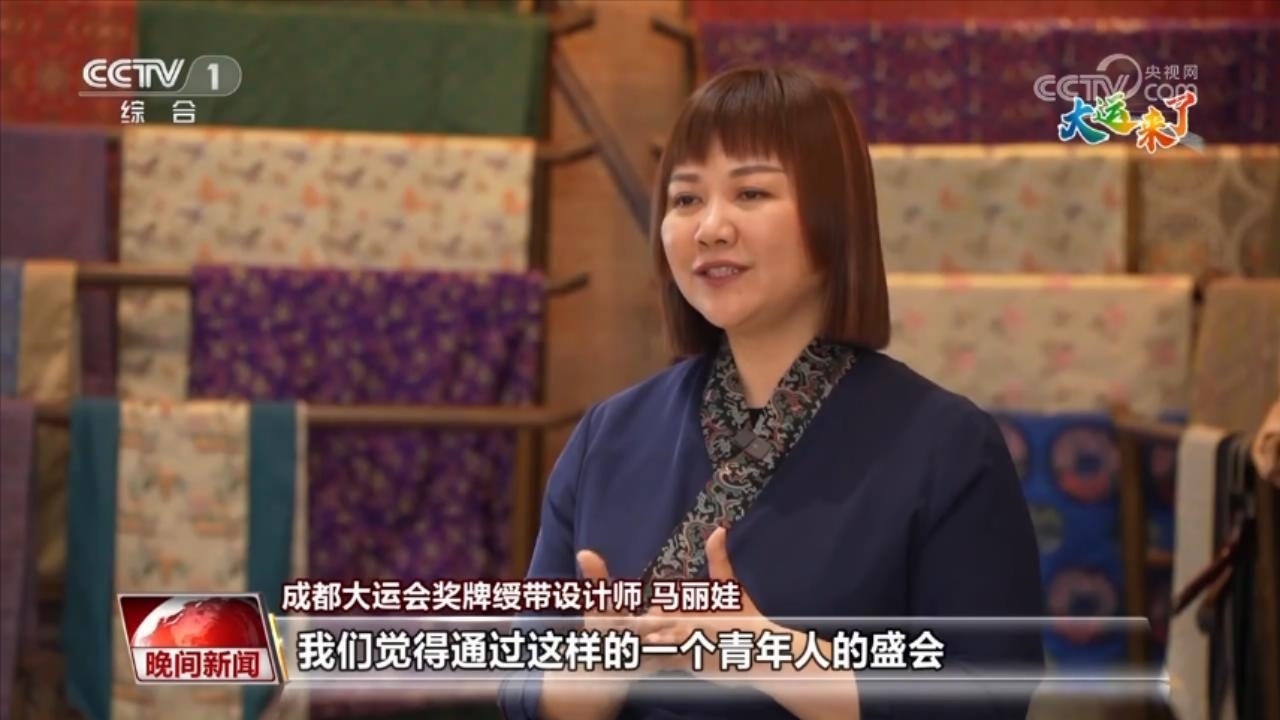 成都大運(yùn)會(huì)獎(jiǎng)牌綬帶設(shè)計(jì)師 馬麗娃:這個(gè)體育賽事其實(shí)是一個(gè)橋梁,通過這樣一個(gè)青年人的盛會(huì),把我們這樣一個(gè)優(yōu)秀傳統(tǒng)文化,用一個(gè)肉眼可見的形式把它傳遞出去,我覺得這是非常棒的一個(gè)形式。