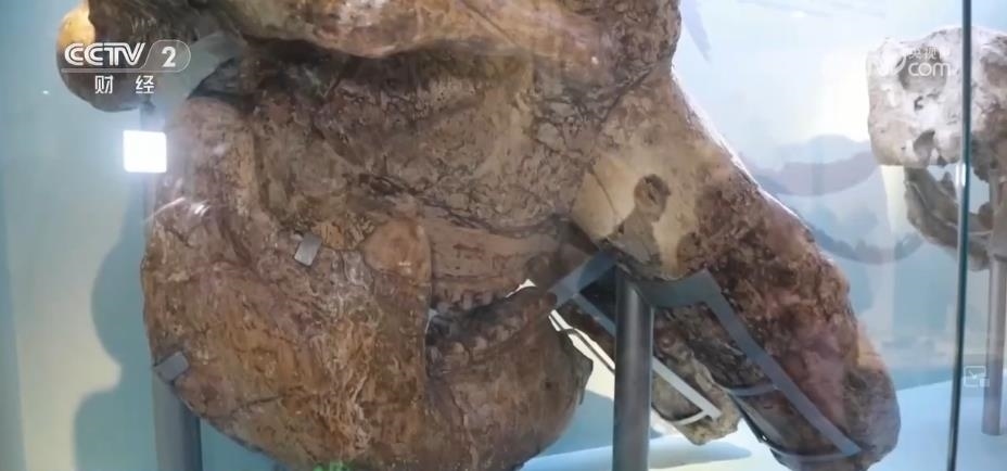 在古哺乳動(dòng)物展廳,還陳列著另外一個(gè)明星展品——一具大象的頭骨。這也是迄今為止我國(guó)體型最大、保存最完整的劍齒象化石。