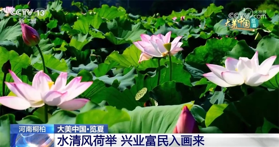 盛夏時節(jié),河南桐柏縣的兩萬余畝荷田迎來了一年中最美的季節(jié)。從空中俯瞰,藍天白云之下,青翠的稻田與荷田相映成趣,沿著彎曲的河流交錯分布,青山依依、碧水潺潺、煙波浩渺、荷葉田田,美不勝收。一株株荷花裊娜地開著,以粉紅色為主,或鵝黃或潔白,一幅絕美的鄉(xiāng)村生態(tài)畫卷徐徐展開。據(jù)了解,目前桐柏荷花主要有藕蓮、花蓮等多個品種類群。當?shù)卣e極探索農(nóng)旅融合發(fā)展模式,在開展觀光旅游度假的同時,蓮產(chǎn)業(yè)已成為群眾增收的新途徑。
