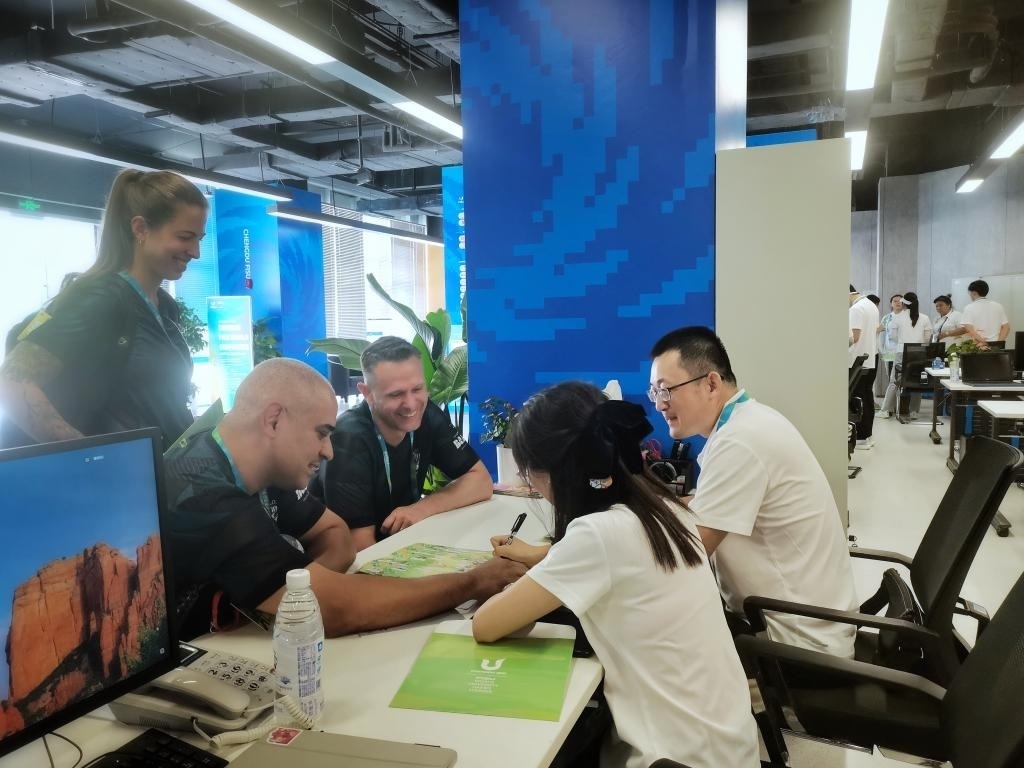 國(guó)外大學(xué)生代表團(tuán)成員在成都大運(yùn)村咨詢(xún)城市文化體驗(yàn)觀光線(xiàn)路活動(dòng)。受訪(fǎng)者供圖