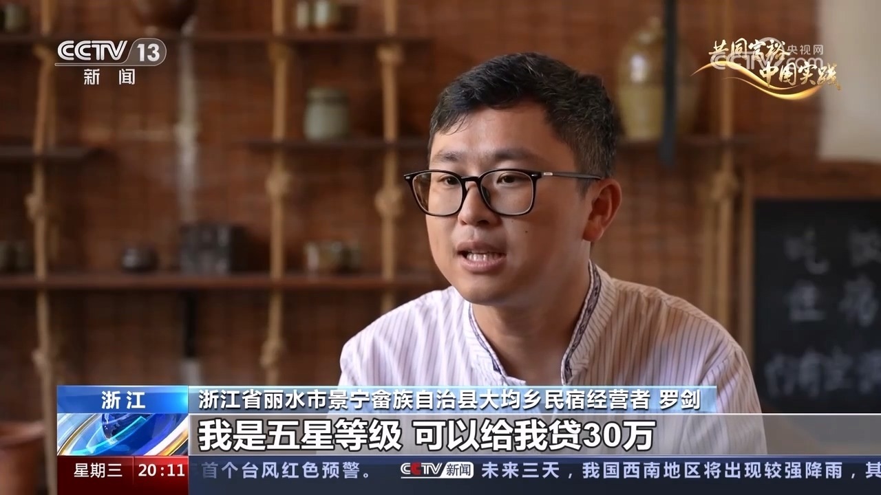 浙江省麗水市景寧畬族自治縣大均鄉(xiāng)民宿經(jīng)營者 羅劍:以我的個(gè)人(生態(tài)信用)等級(jí),我是五星等級(jí),可以給我貸30萬,而且我了解了年利率,它是3.85%,算起來是最低的,所以說我就去貸了。