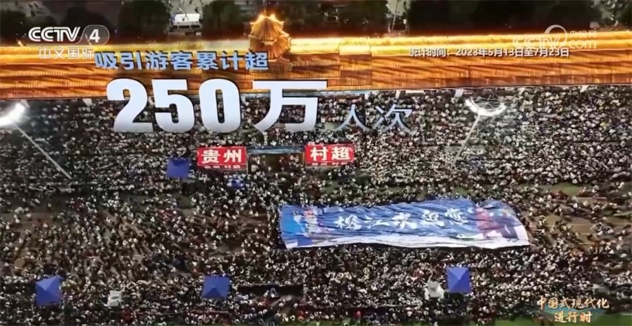 據(jù)統(tǒng)計(jì),自今年5月“村超”開賽至7月上旬,榕江縣累計(jì)吸引游客超250萬(wàn)人次,實(shí)現(xiàn)旅游綜合收入28.39億元?!按宄辈粌H展現(xiàn)了當(dāng)代中國(guó)農(nóng)民豐富的精神文化生活,更助推了鄉(xiāng)村振興。
