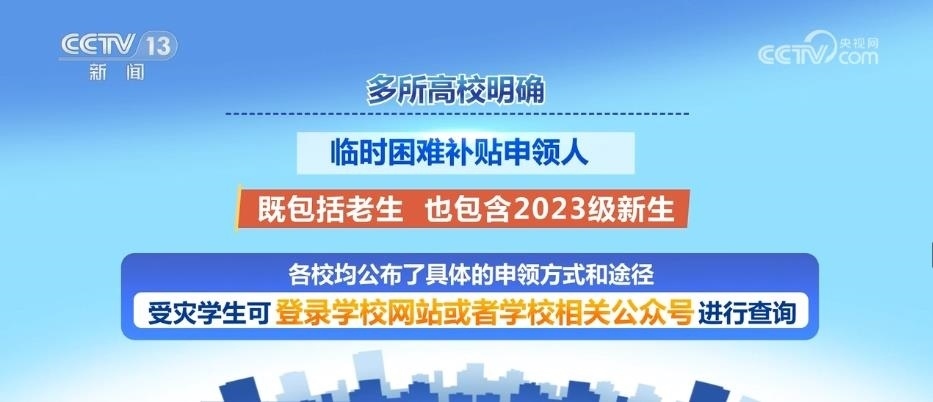 多所高校明確,臨時(shí)困難補(bǔ)貼申領(lǐng)人既包括老生,也包含2023級(jí)新生。各校均公布了具體的申領(lǐng)方式和途徑,受災(zāi)學(xué)生可登錄學(xué)校網(wǎng)站或者學(xué)校相關(guān)公眾號(hào)進(jìn)行查詢(xún)。其中,南開(kāi)大學(xué)、北京航空航天大學(xué)等高校公布了資助熱線(xiàn)。上海交通大學(xué)、西北工業(yè)大學(xué)等高校提出,需要幫助的學(xué)生可第一時(shí)間聯(lián)系輔導(dǎo)員。華東師范大學(xué)提出需要幫助的同學(xué)可在學(xué)生資助管理中心網(wǎng)站后臺(tái)申請(qǐng)臨時(shí)性困難補(bǔ)助。