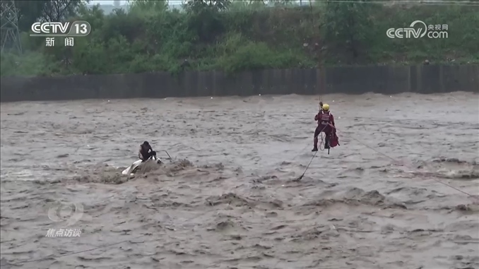 河北武安市南環(huán)東路消防救援站政治指導(dǎo)員田明:“救援人員到達(dá)現(xiàn)場(chǎng)以后,發(fā)現(xiàn)現(xiàn)場(chǎng)情況十分危急,首先是被困車(chē)輛和人員處于河道正中央,距兩岸均有50余米,二是水流十分湍急,而且水中雜物很多,嚴(yán)重影響施救。”