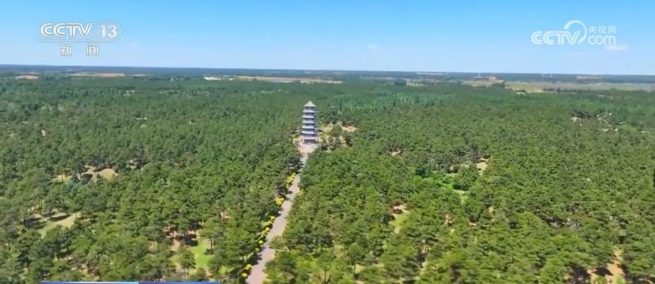 如今,在曾經(jīng)風(fēng)沙最嚴(yán)重的彰武縣章古臺鎮(zhèn),記者登上瞭望塔遠(yuǎn)眺,映入眼簾的是綠意盎然綿延不斷的萬畝“林?!币恢变佌沟教爝叀,F(xiàn)在,這片防護(hù)林帶猶如一條綠色的屏障,有效阻隔了科爾沁沙地南侵,形成了“以樹擋沙”的治沙模式,也造就了大漠“林?!钡钠嬗^。